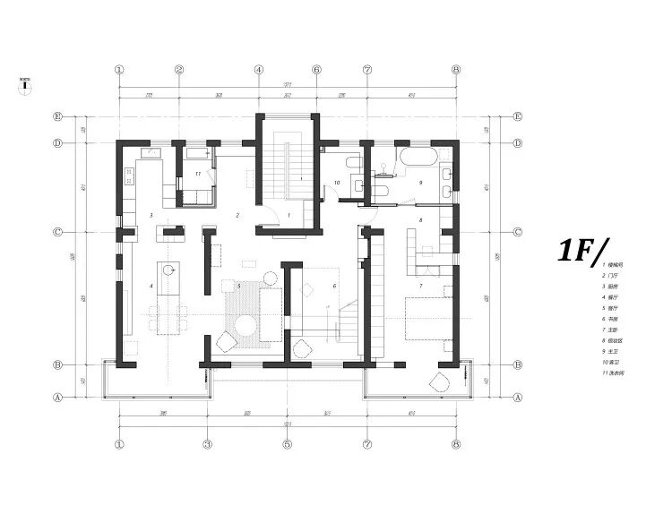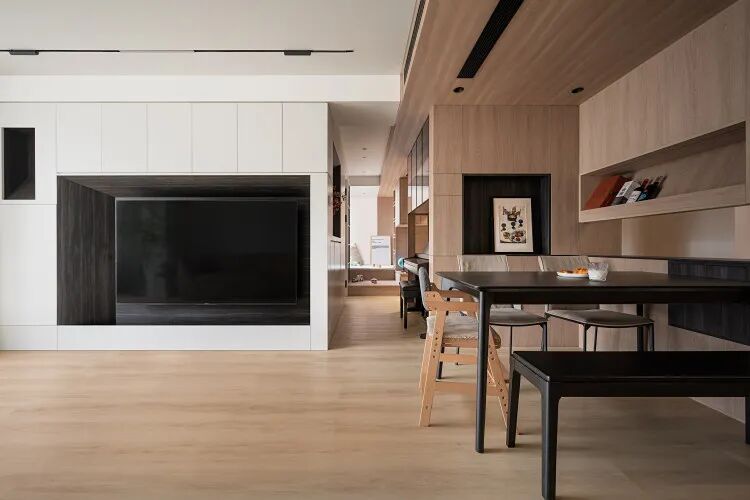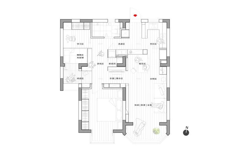 作为平面规划的好手,顽鄙设计面对这个劣势明显的户型,首先想到的是“要摆脱房间固化的思维,将行为和功能从房间中剥离出来”正是这种跳脱的思维方式,帮助他们根据人的生活行为梳理出了有秩序的空间布局方式。