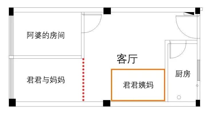 在狭小的28㎡六十年代老房中,居住着横跨8岁到80岁的三代四口人。妈妈、女儿、姨妈和外婆已经在这里共同生活多年。原始居住条件较差,入户门正对户外公共卫生间,室内拥挤,采光较差。