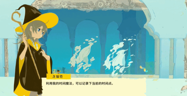 而比较抽离的说法是,游戏应该是有两个场景,玩家可以操作小魔女在这两个场景间进行切换,角色在两个场景间的动作是镜像同步的,但机关并没有同步,因此切换场景时产生了“时间回溯”的感觉。