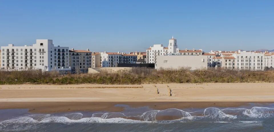 在阿那亚黄金海岸的沙滩上,OPEN设计了一座消隐的美术馆,如同藏于沙丘之下的神秘洞穴。海岸沙丘经历了漫长的时间累积和风沙推移而自然形成,并被原生低矮灌木深扎的根系固化下来。