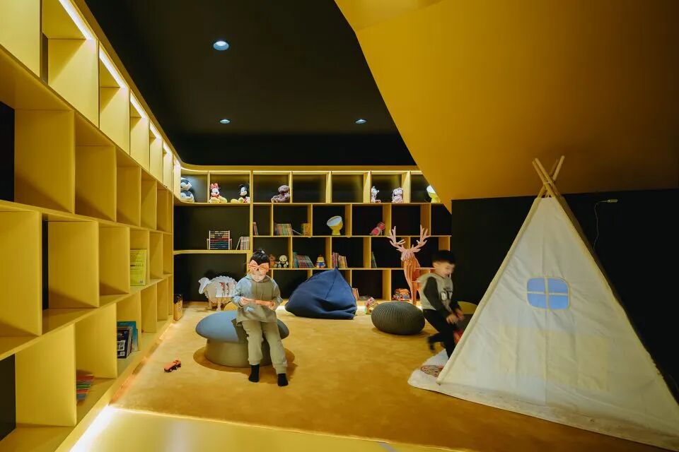 设计师希望不去定义孩子们的世界,而是让他们自己去创造世界;不是以具象和装饰化的语言去给予孩子一个空间,而是以童心去构想具有无限想象力的空间。将原本三个相互独立和封闭的空间的隔墙最大限度的拆除。通过新的设计语言去探索空间形态的趣味性,使建筑固化的结构墙体消隐在空间之中。融合的同时创造出多变丰富具有探索性的空间。