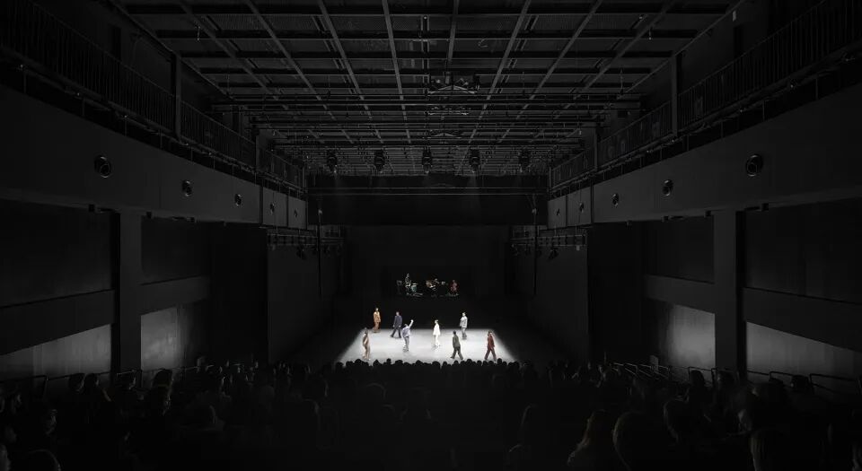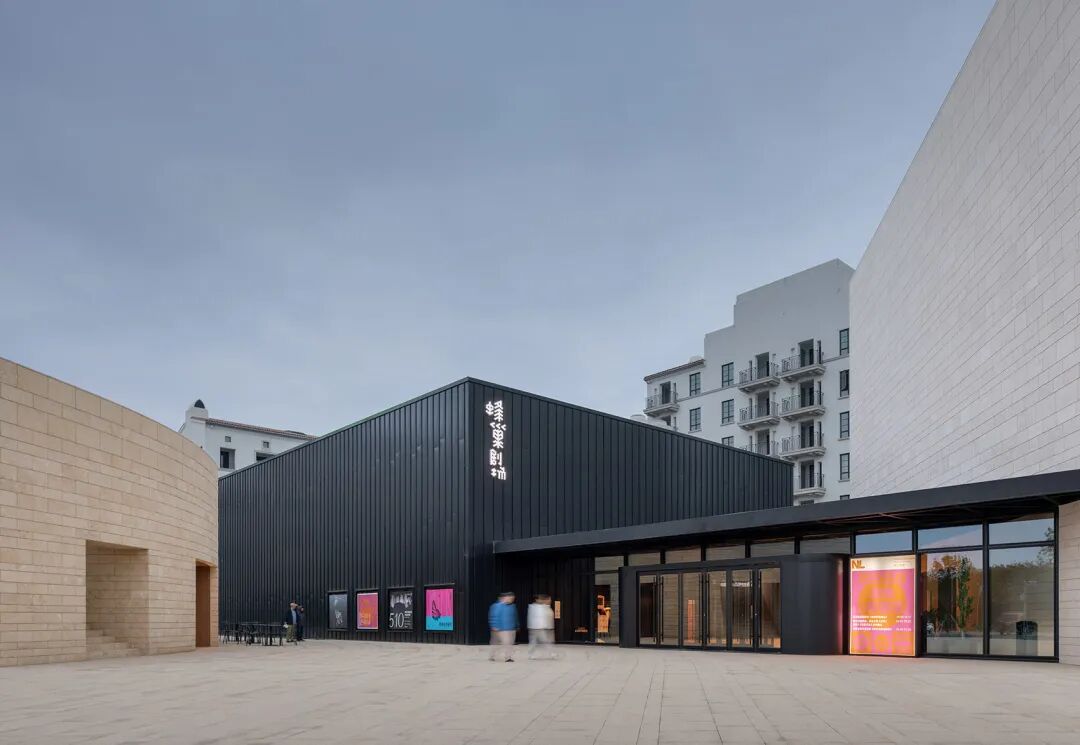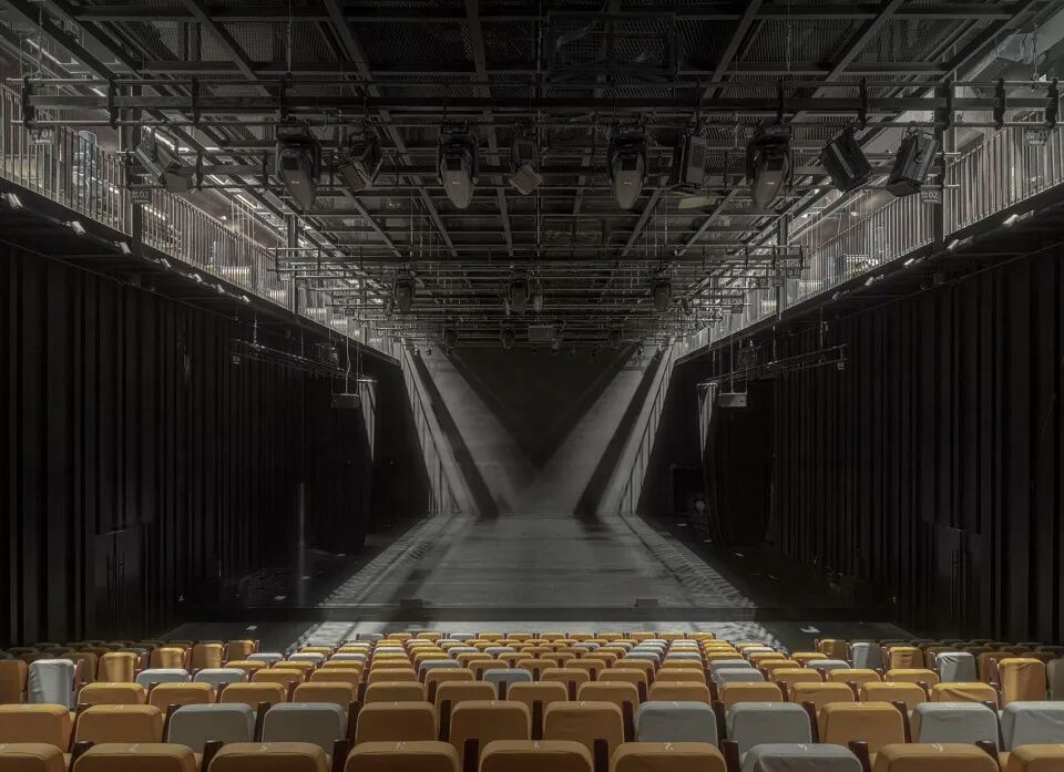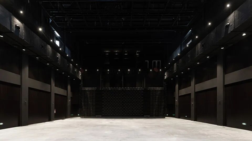 以黑色为主色调的阿那亚蜂巢剧场,自带一种先锋的气质。棱角分明的外立面线条,让沉默的黑色更加神秘。剧场可容纳300人的折叠座椅,为观看提供了多重角度。内部通体喷黑,后墙、侧墙与天花板处处用心的设计与选材,为观众呈现丰富的观看体验。