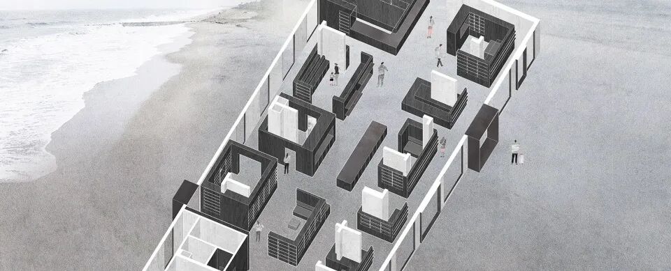 悬浮带来了上下两层人的生活。下层是一个有遮盖的临海空间,它可以给这片沙滩上活动的人提供避雨遮阳休憩的场所。由于教堂离海很近,涨潮时,这个空间可能会被海水浸没。在这一瞬间,这个建筑就回到了人们心目中那艘很久以前漂泊在海上的船一样的状态。