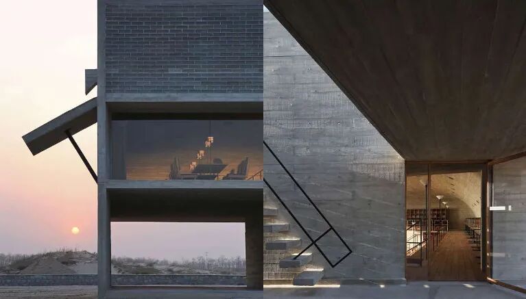 设计是从剖面开始的,图书馆是由一个主要的阅读空间、一个冥想空间、一个活动室和一个小的水吧休息空间构成。设计师依据每个空间功能需求的不同,来设定空间和海的具体的关系,来定义光和风进入空间的方式。如果可以将这个房子沿南北长向剖开,就可以更清楚的察觉这一组空间各自诠释着每个空间与海的具体的关系,而串联这一系列关系的要素,恰恰是人的身体在空间的游走和记忆。