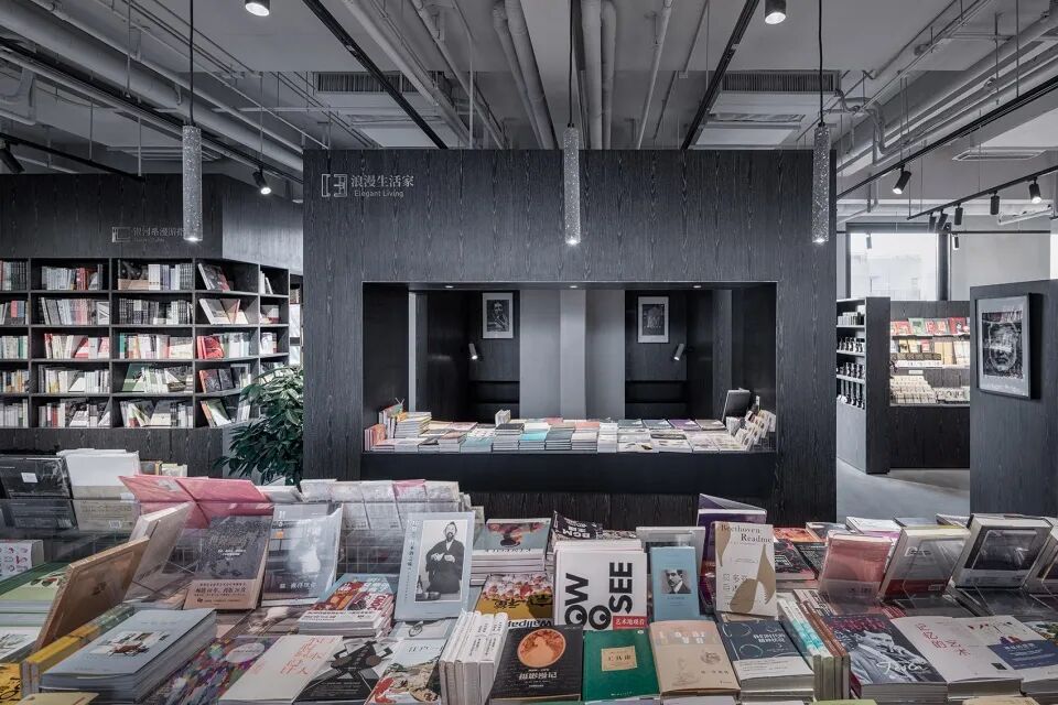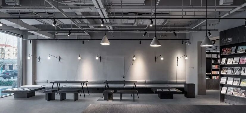 与传统书店不同的是,设计师企图创造一个以人为单元的互动空间。在原有梁柱结构不变的前提下,采用“包裹”和“消解”的方法,将不同功能的深灰色木质的盒子穿插其中。这些形态大小不一的“盒子”赋予原本单一的空间更丰富的延展方式,令读者在随意游走中完成对空间的趣味探索。既可以隐于一个人独处的小盒子,沉浸于一个人的冥想,也可以走入更开放的空间,遇到新的朋友产生交流和互动。这些“盒子”给了人们选择孤独的机会,也带来相聚的可能。