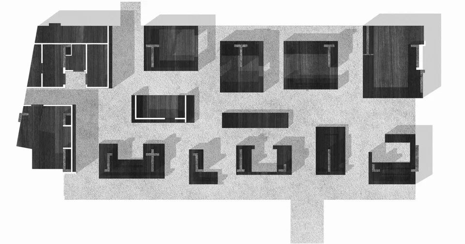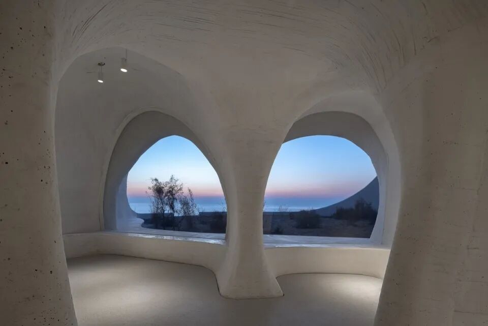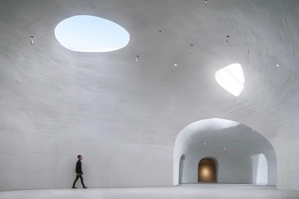 受启发于孩童们在海边挖沙的游戏,建筑师尝试在沙丘里“挖掘”创造出形态各异又互相连接的一些“洞穴”——这也是人类最原始的居住形态和最早的艺术创作场所。一系列细胞状的连续空间,构成了沙丘美术馆里丰富的功能,包括大小形态各异的展厅、接待厅和咖啡厅等。