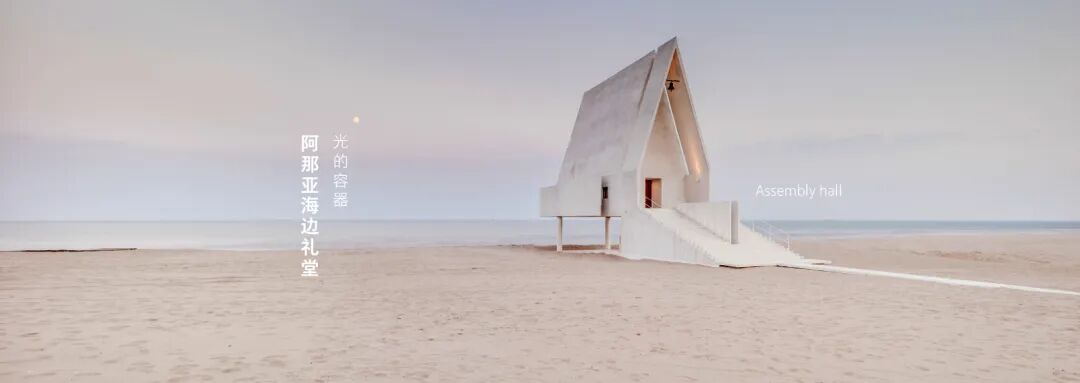 阿那亚礼堂距离孤独图书馆仅300米,与图书馆一灰一白相互凝望。俯瞰,礼堂犹如一个白色的帆船,在海边整装待发。建筑设计师董功将这个教堂想象为非常久远以前曾经漂泊在海上的一艘船,岁月变迁,海水退去,留下来一处空间的构筑,依然凌空悬浮在沙滩之上。