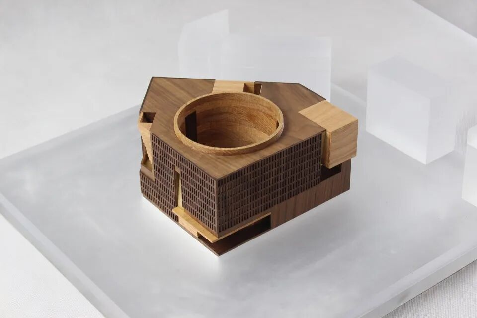 建筑的外围体量厚重,最大程度利用了基地面积,而中心位置则挖凿出了一个倒置的圆台空间,形成一座环形的阶梯式剧场。空间形式可以满足多种使用需求,环形的广场在充满水时可以形成水景,排水后又可作为表演和集会空间,能够吸引更多的人群,同时带动艺术的活力,从而使得这个项目不仅仅是一个艺术的空间,同时也是一个社区分享和聚集的地点。