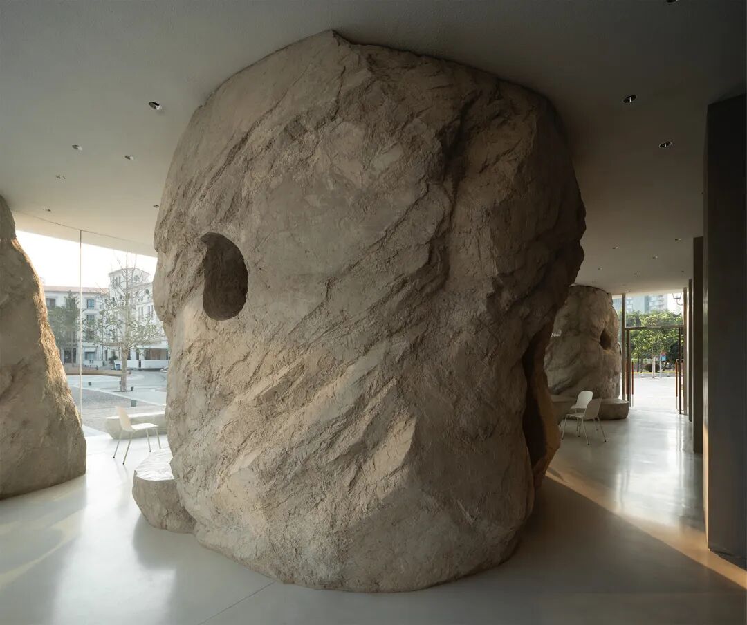 设计从自然出发。身处辽阔的天地河海之中,人也像是沙滩上的石头,成为渺小和孤独的存在。大自然的沉静和广阔让人们脱离城市的生活节奏,面对内心,回归本真。在这里,设计师希望建筑可以成为一处让人们安顿自我的精神角落。