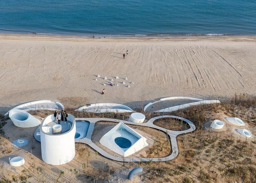 这是建筑师董功继孤独图书馆和海边教堂之后在阿那亚社区中设计的第三个海滨公共空间。