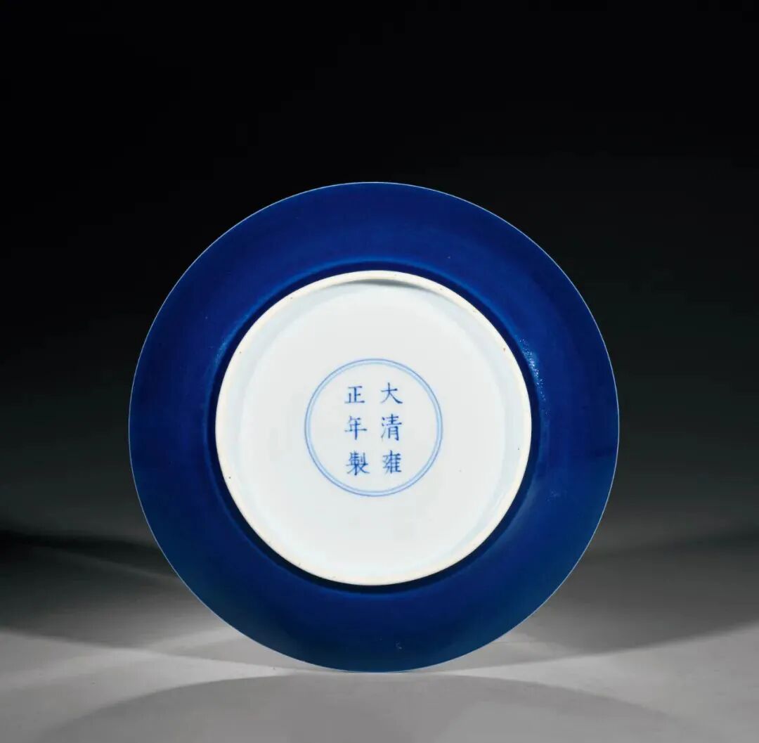 ▲清雍正内白釉暗刻云龙纹外蓝釉盘
