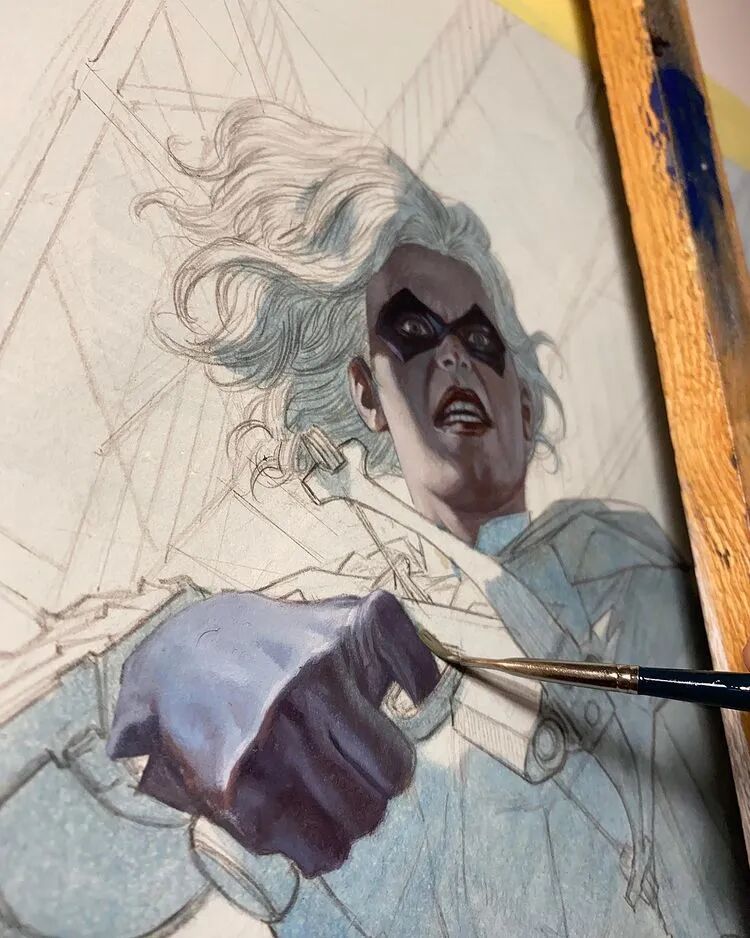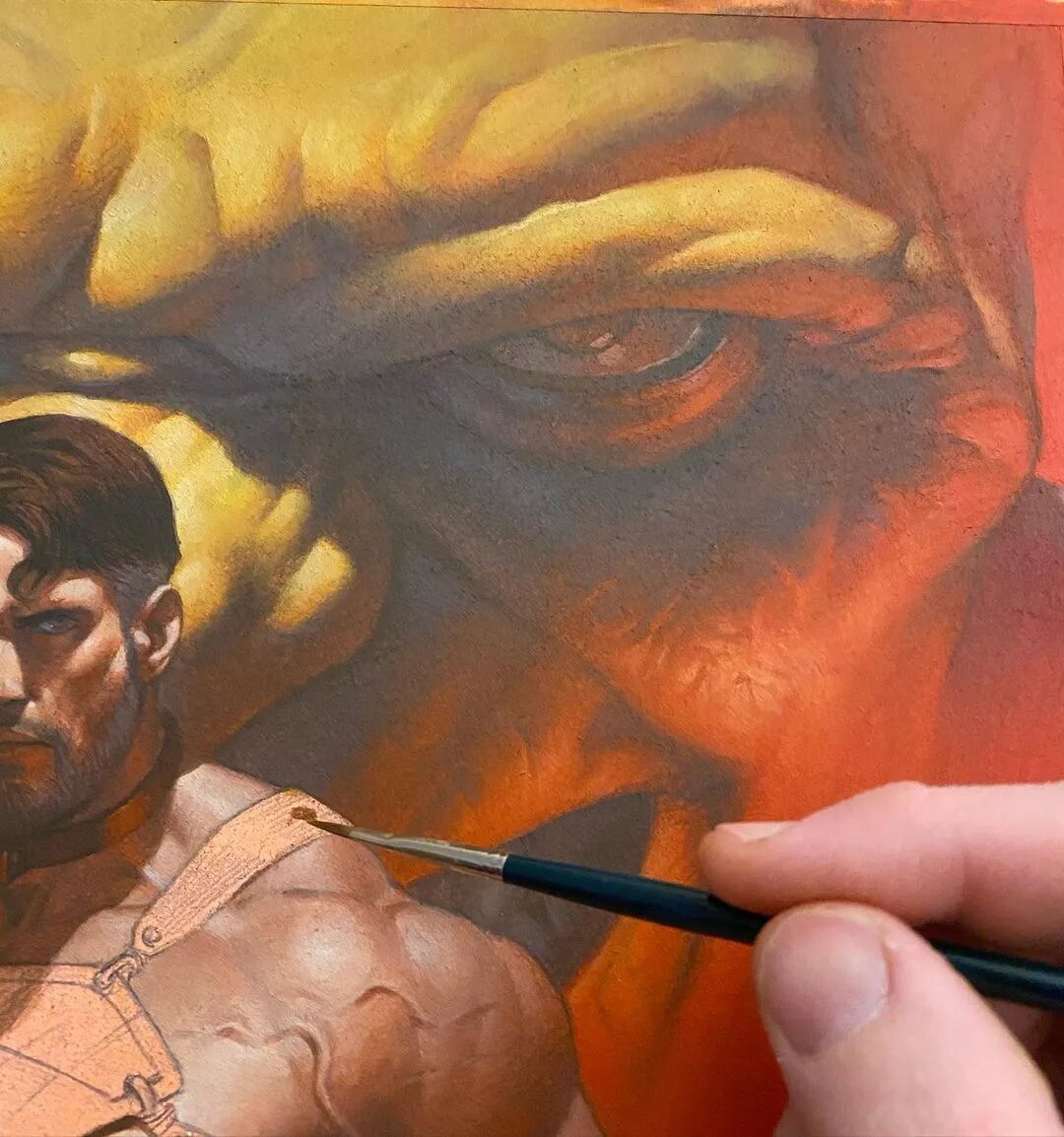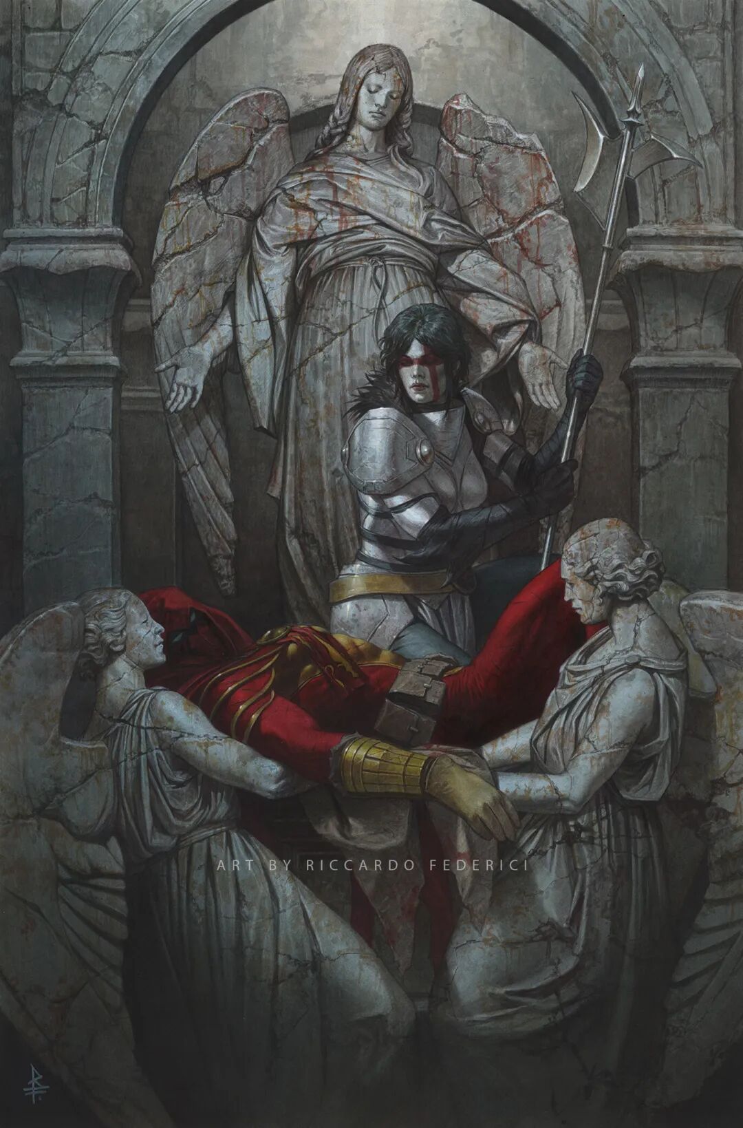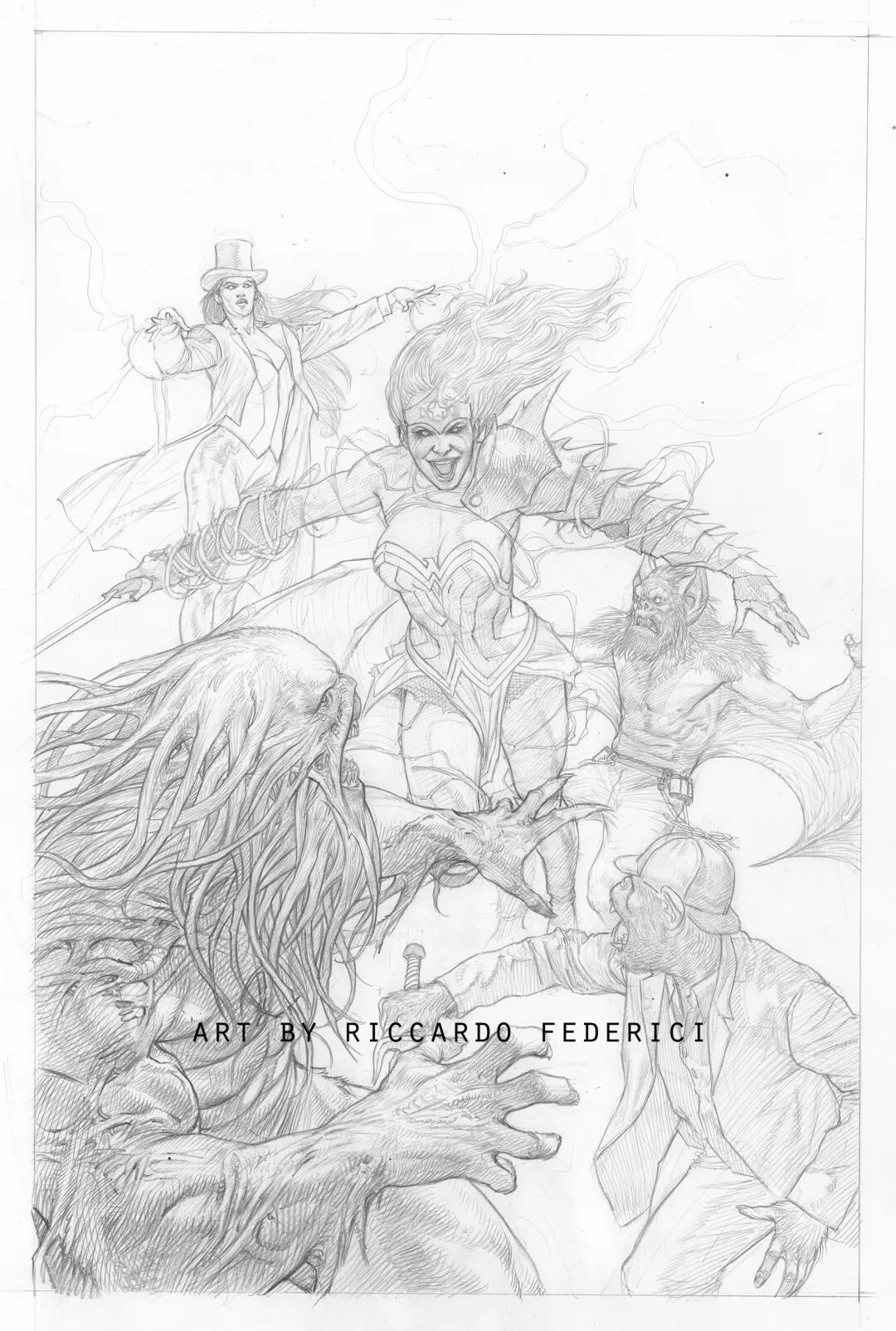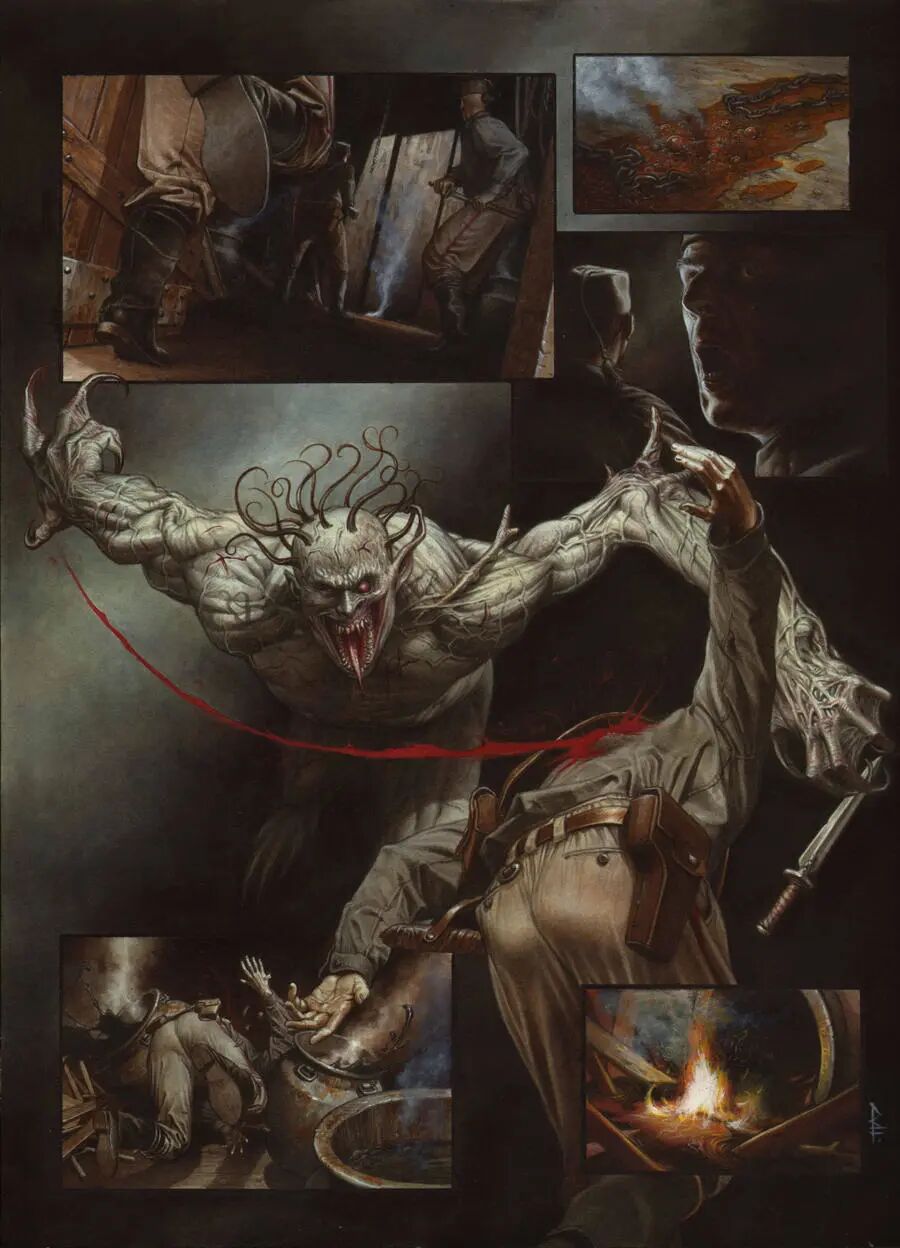 Riccardo每天工作8-10个小时,他创作最大的特点就是坚持手绘,Riccardo素描功力极强,为漫画绘制的封面人物张力十足,色彩运用相当漂亮,质感厚重,光泽感细腻。