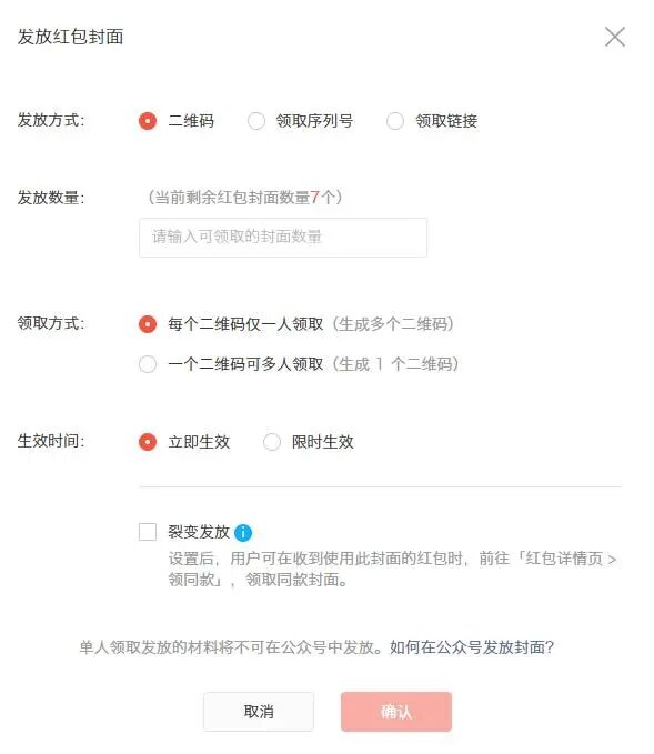 发放形式有二维码,序列号,链接三种形式,每个用户对应一个红包封面,还可以裂变发放。用户领取后,3个月内无限次使用红包。目前这种红包形式是宣传个人和品牌非常好的方式。