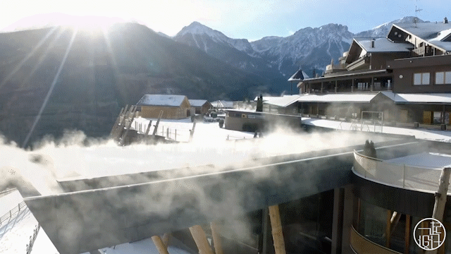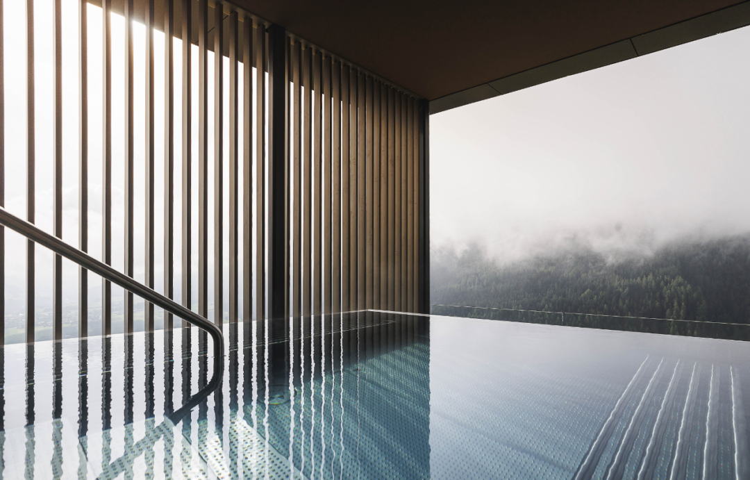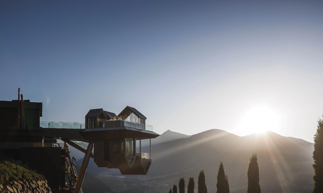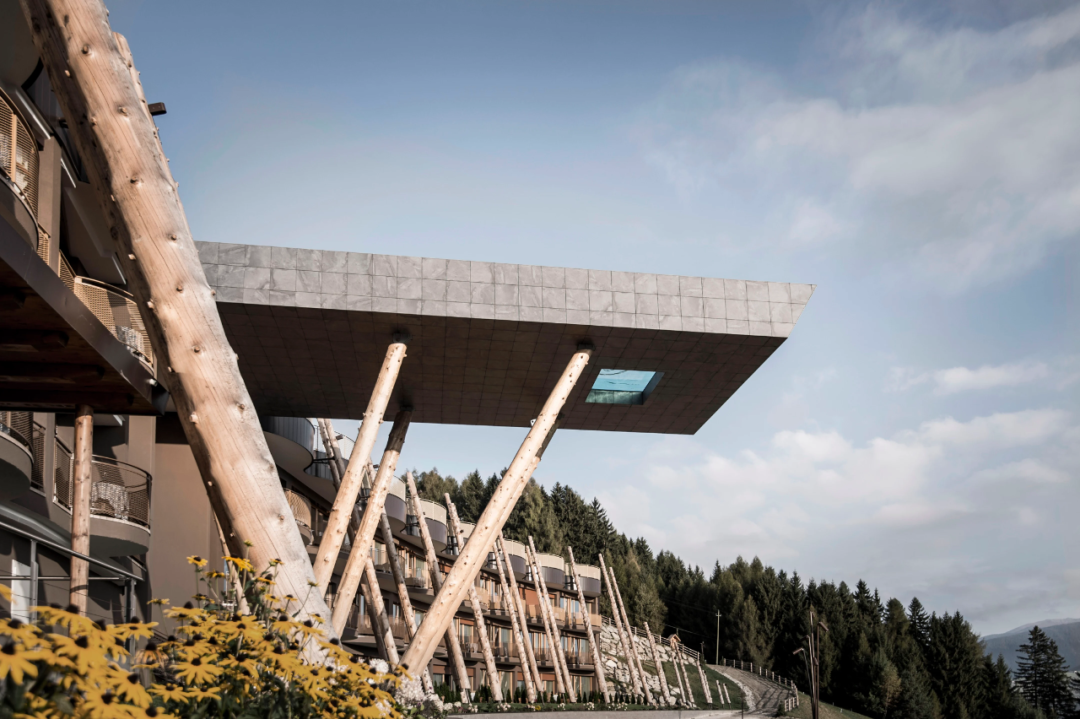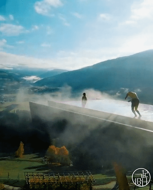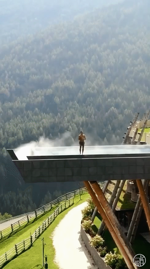 今年酒店又在原有基础上,增添了一个悬挑结构出来,连接着新旧建筑,强调了其翻新的本质。