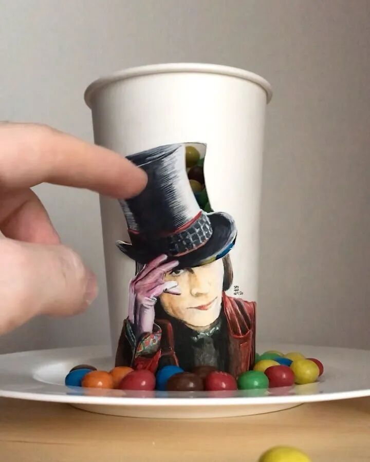 接下来,就让我们一起来欣赏一下,伯克·阿玛甘的一次性纸杯涂鸦作品吧。
