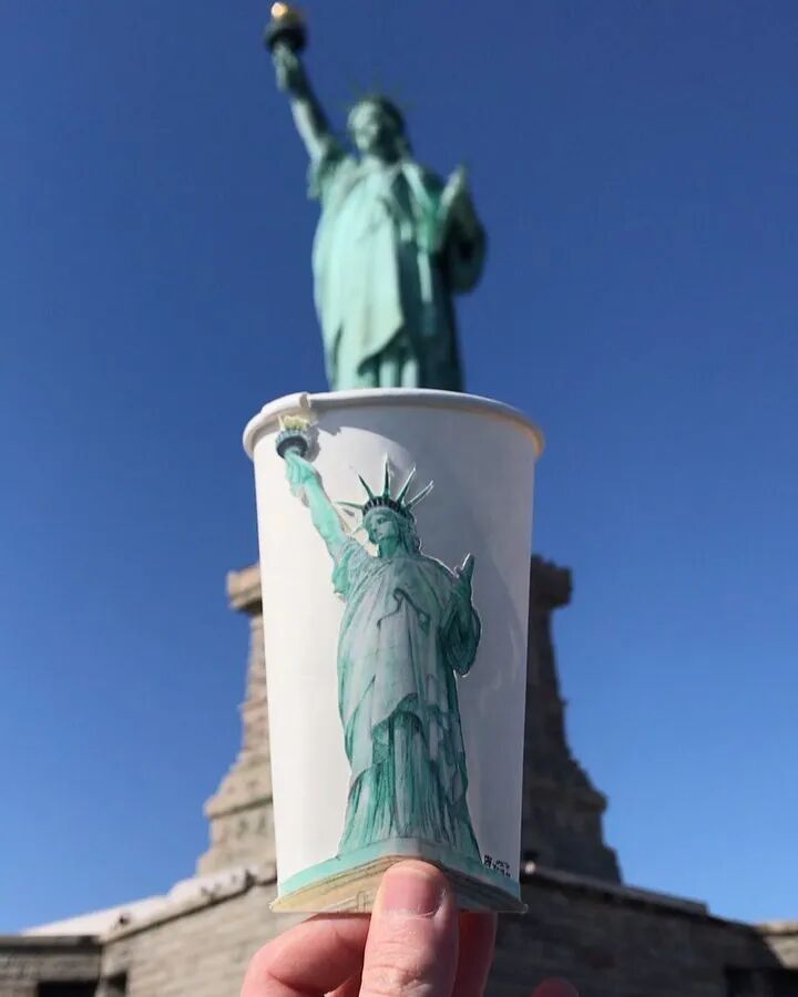 就是靠这样一个疯狂又不切实际的想法,这个小伙子在几年的时间里走过了27个国家,70多个城市。现如今,伯克·阿玛甘依旧在路上,他的目标是走遍全世界,也用画笔和一次性纸杯去记录下他所看到的风景。