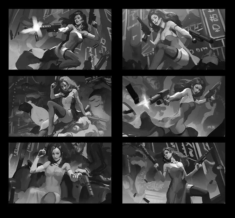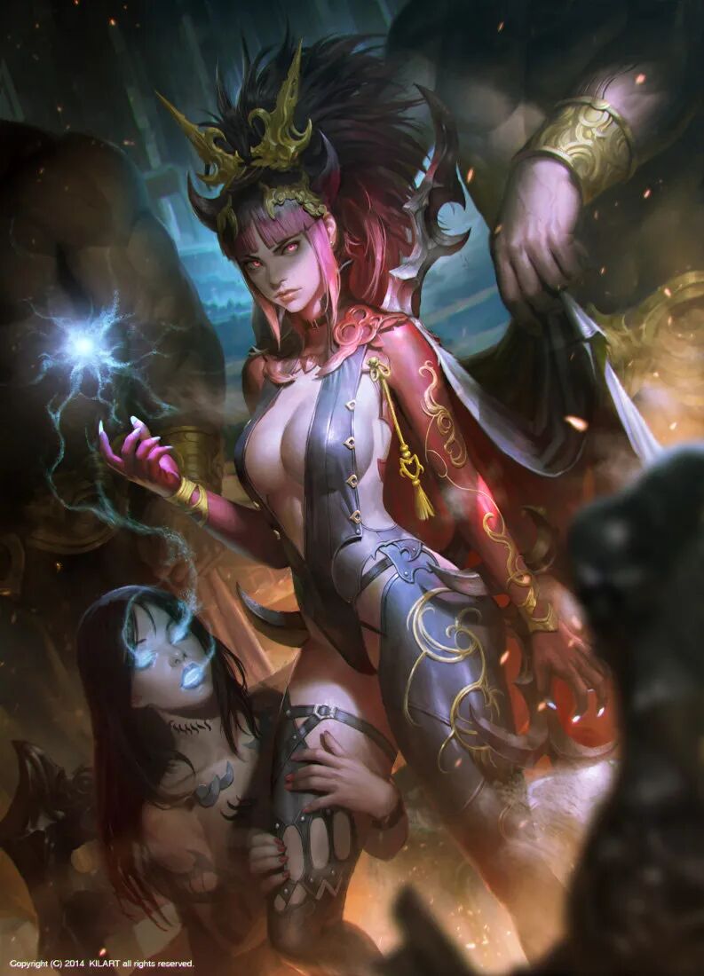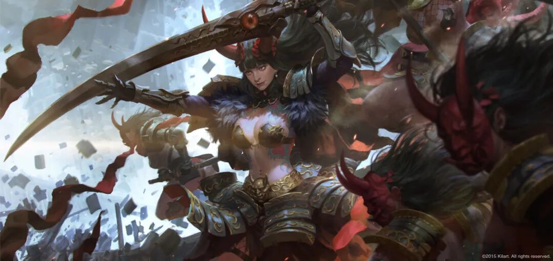 KILART在人物设计方面实力很强,尤其是女性角色,他将韩系画师擅长的细腻肉感与厚涂写实融合,体积感强烈,氛围构图非常有故事性。