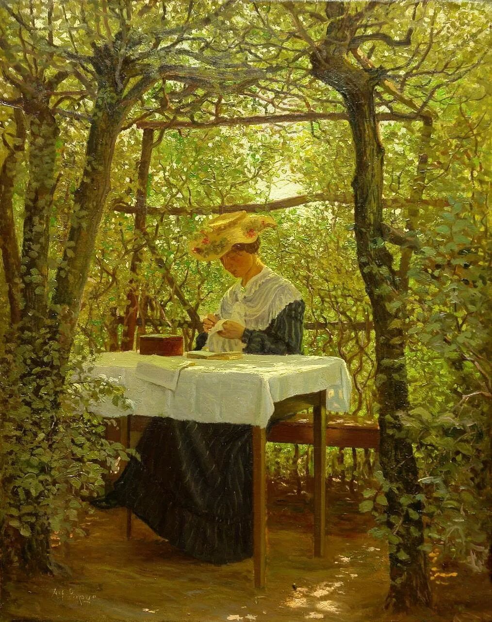 他最出名的是他的阳光下的丹麦家庭室内内景画,通常有一位坐着的女士,这些画在拍卖会上可以卖出高价,但他也是一位出色的丹麦风景画画家,他于1891年、1892年和1894年在艺术学院展出。他被任命为 "无产阶级妇女绘画学校 "的校长。