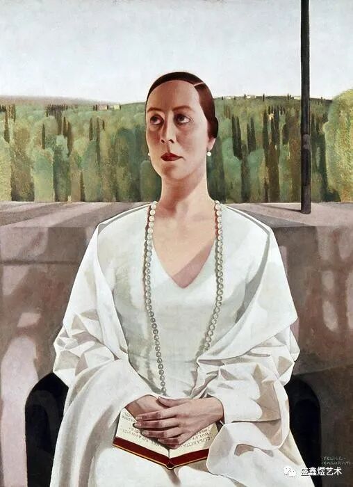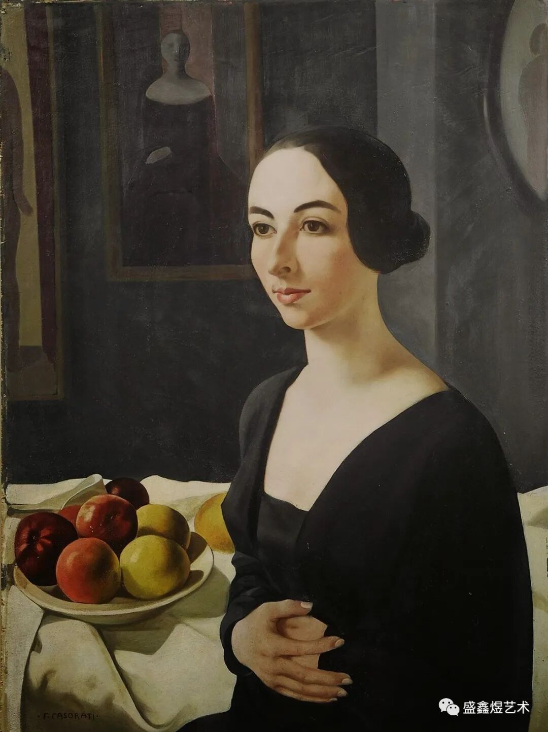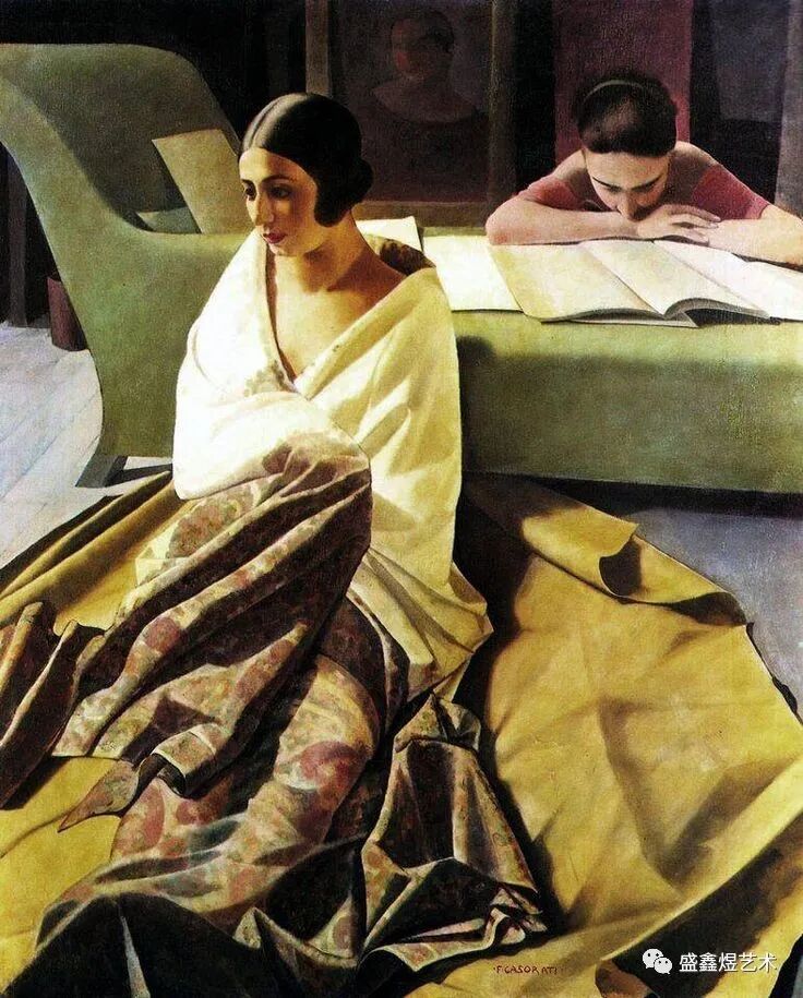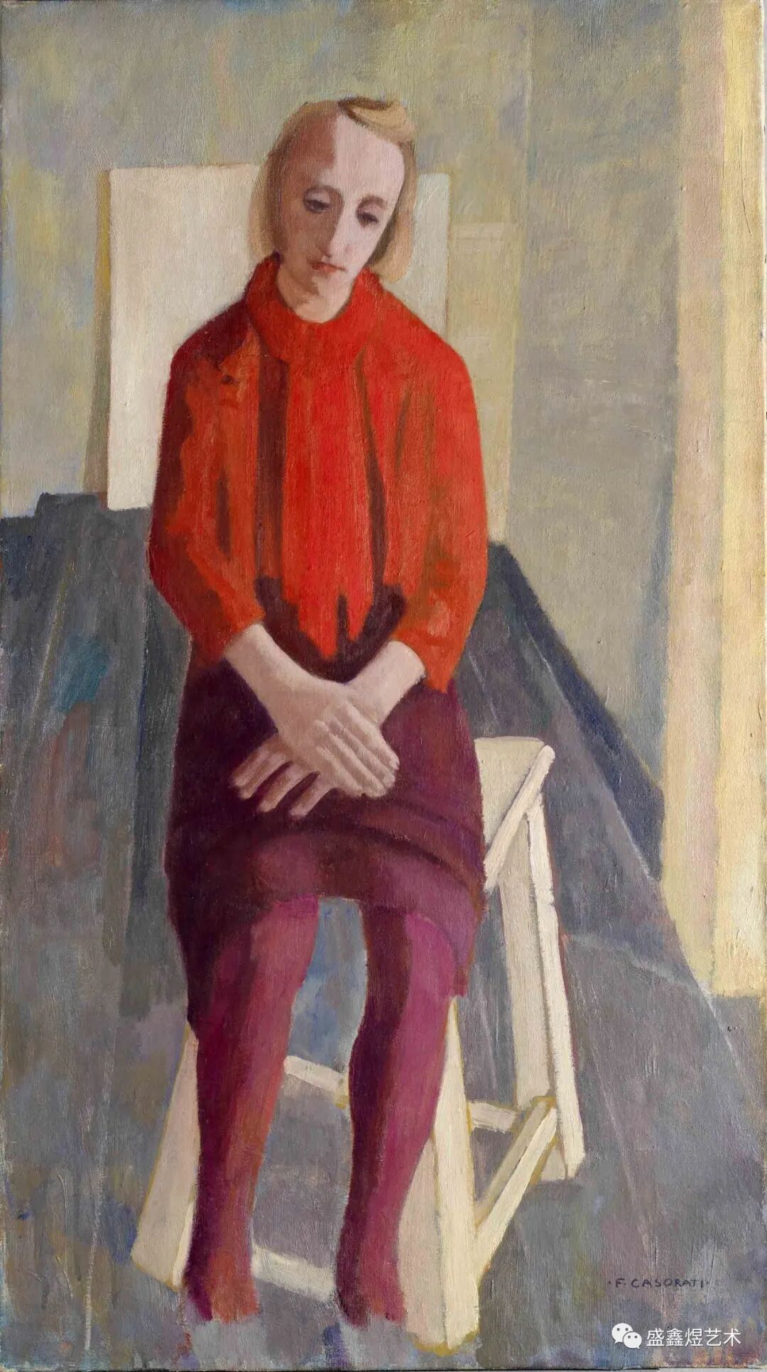 卡索拉蒂经常在蛋彩画中工作,从他对文艺复兴时期大师的研究中汲取灵感,尤其是Piero della Francesca,就像他 1922 年题为Silvana Cenni的肖像画一样。这幅坐着的身穿白色连衣裙的女人的对称构图也许是这位艺术家最著名的作品。在其中,对体积的仔细渲染自相矛盾地导致了一种不真实感,这是卡索拉蒂艺术的特征。