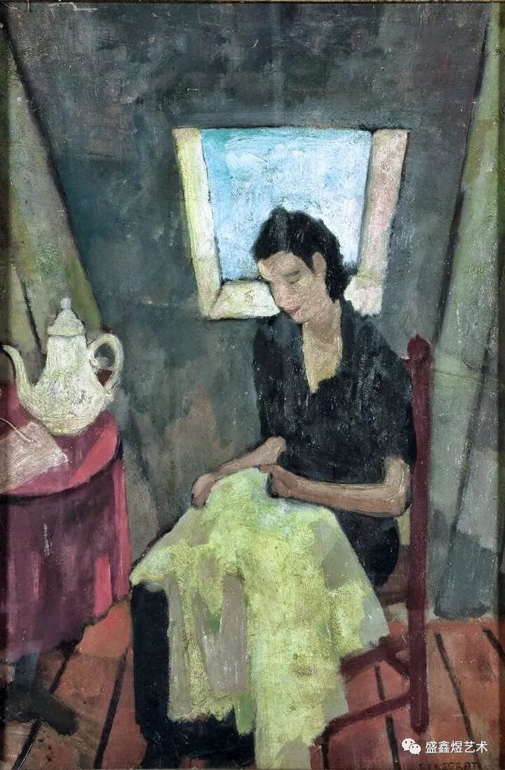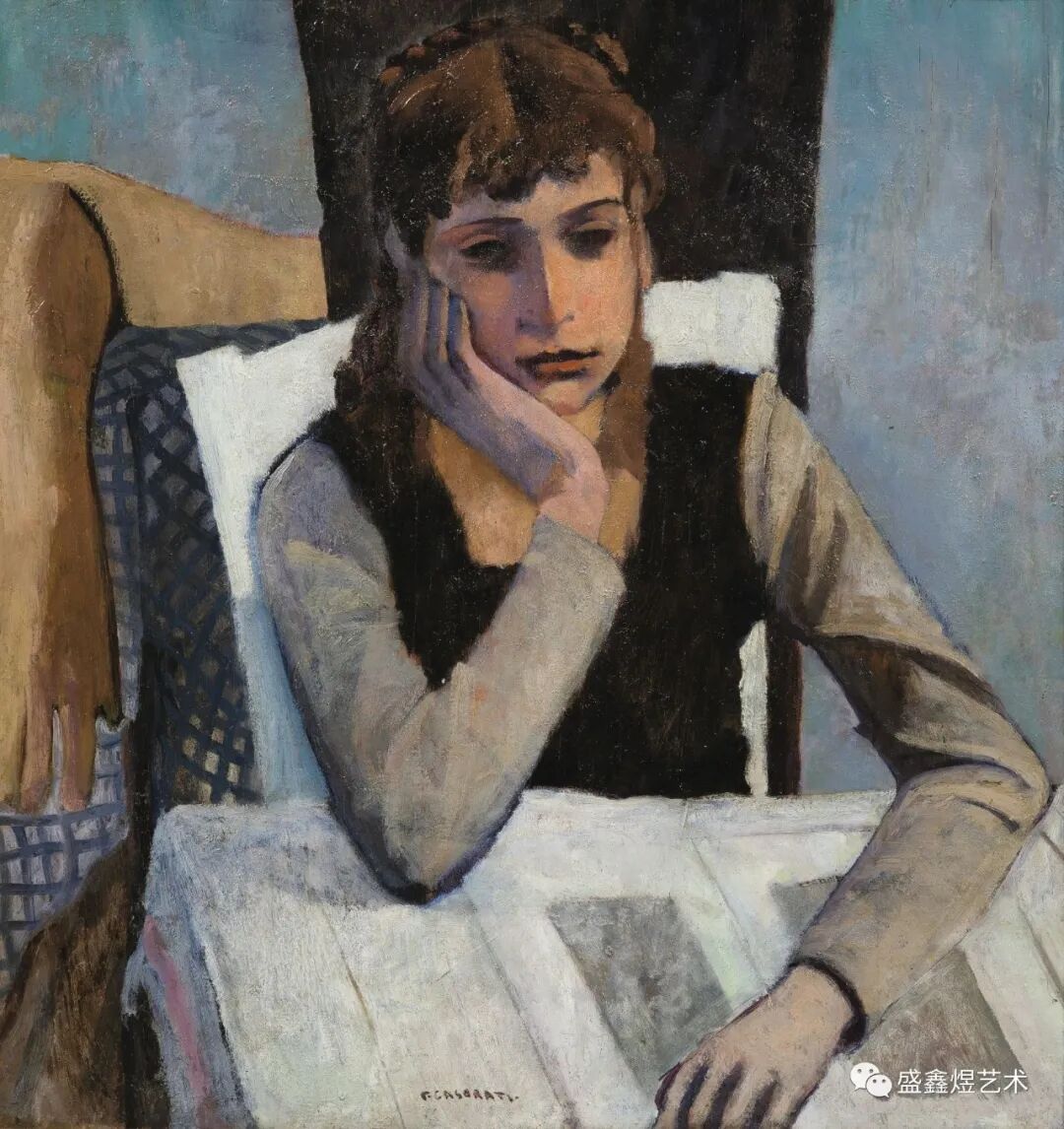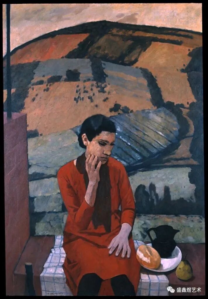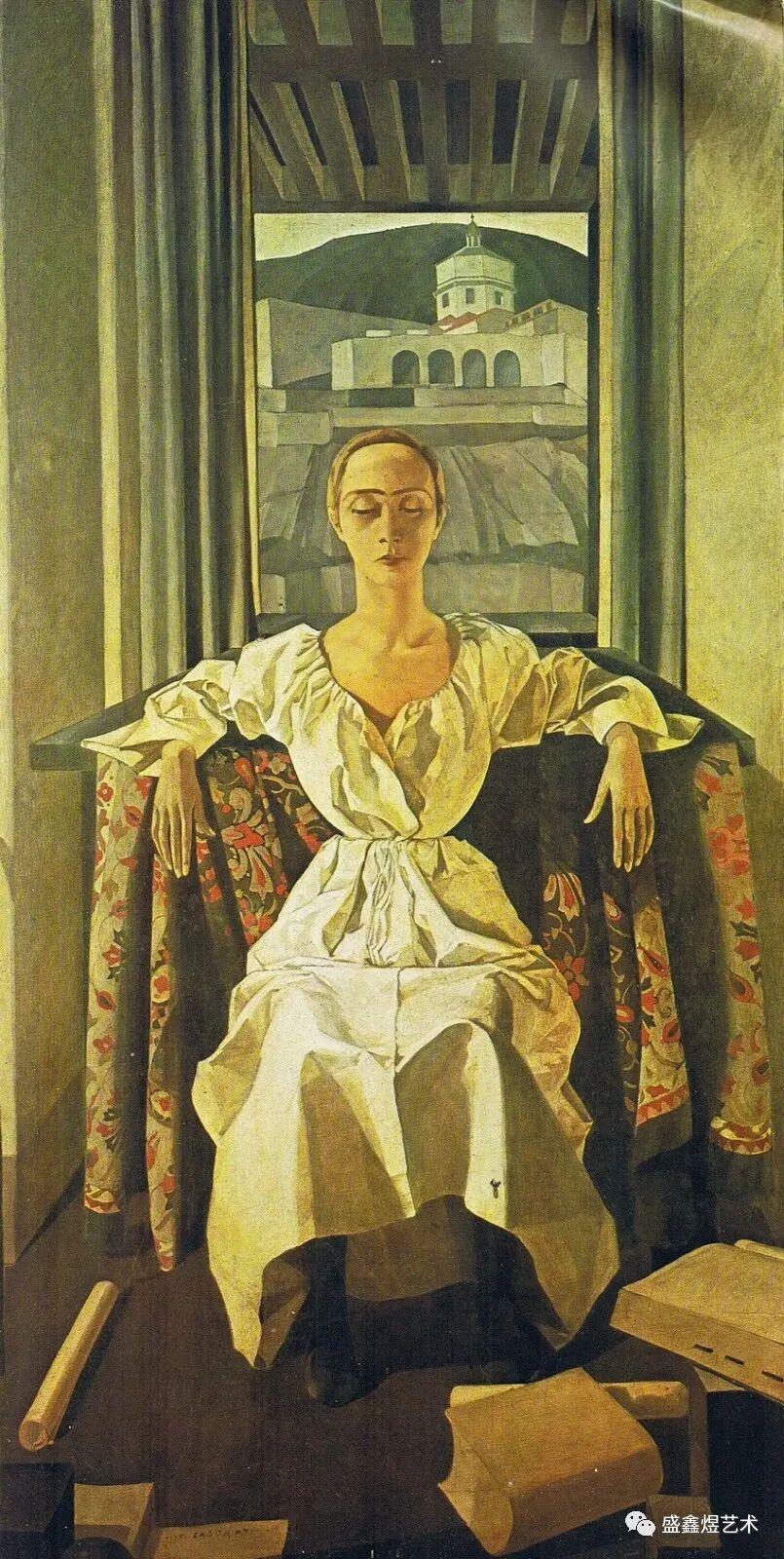 卡索拉蒂经常在蛋彩画中工作,从他对文艺复兴时期大师的研究中汲取灵感,尤其是Piero della Francesca,就像他 1922 年题为Silvana Cenni的肖像画一样。这幅坐着的身穿白色连衣裙的女人的对称构图也许是这位艺术家最著名的作品。在其中,对体积的仔细渲染自相矛盾地导致了一种不真实感,这是卡索拉蒂艺术的特征。