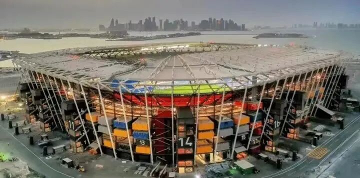 中国建造的一座由集装箱拼装的可拆卸“974球场”,其中的集装箱均来自江苏省扬州市(图源网络)