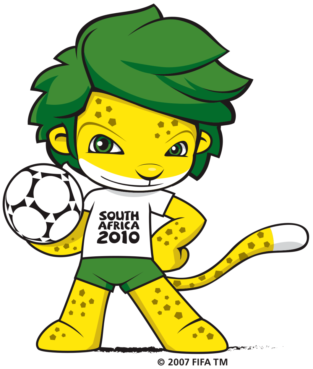 2010年南非世界杯选取了非洲猎豹作为原型,名为扎库米并把它拟人化:“他是个年轻人,充满活力,聪明,有抱负。扎库米热爱足球,他认为足球可以打破语言上的隔阂。因此,他总是把自己的足球带在身上。”