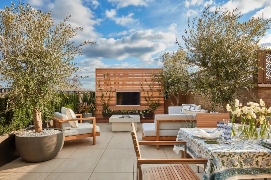 住宅的其他空间内,奶油色釉面中式花格、方形栏柱凳和八角威尼斯蚀刻玻璃镜令人一见难忘;而中式白瓷将军罐、瓷器、陶茶罐和日式酱油罐则装点着室内的各个角落。Katharine最喜欢的一个装饰细节,是用精致的古董纱丽制成的低悬灯罩,巧妙缓和了椭圆形吊灯硬朗的边缘。