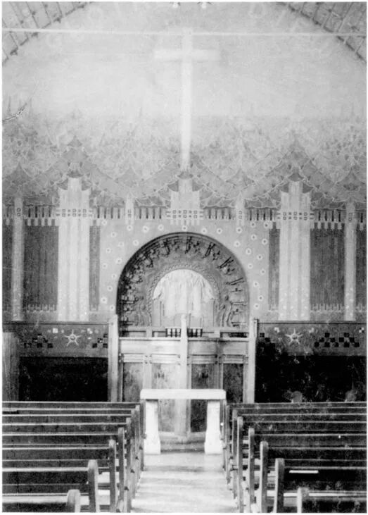 教堂设计中的松树及其树枝已被规范化,以提供更大的装饰力,但它们的组织确实反映了拉斯金所规定的:来自一个活根的养分、辐射、寻找光的自由以及相互关联的各部分。即使对于那些不知道拉斯金的道德类比及其社会和宗教含义的人来说,由面向“光”的有序元素的组合所获得的秩序感也是非常惊人的。设计的简单性和图像程序的直接性非常适合一个旨在为有序的农村社区服务的小教堂。
