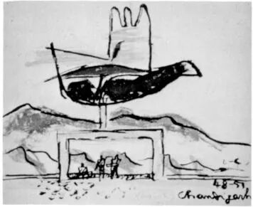 柯布于1951年对开放底座的张开的手纪念碑进行的研究