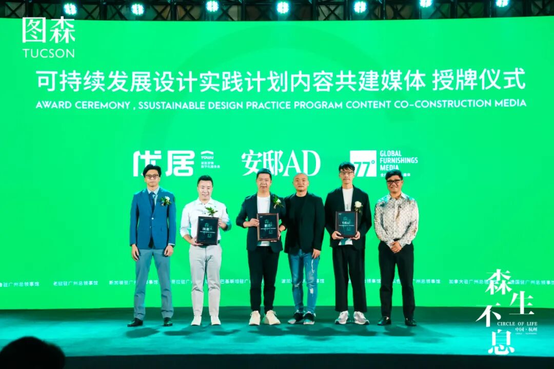 媒体既是内容与创意的践行者,也构成了中国可持续发展设计的脉络。在杭州站论坛现场,广州设计周CEO贺文广、图森执行董事兼总裁王维扬、图森·杭州总经理喻春雷为设计&泛家居头部媒体安邸AD、77°、优居举行了隆重的 [2022可持续发展设计实践计划·内容共建媒体] 授礼,未来将共同为中国可持续设计发声,共促设计新媒体的快速发展