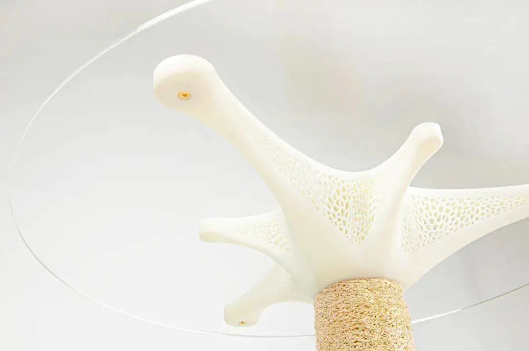 奥斯卡·王尔德(Oscar Wilde)曾说,“我们往往只欣赏自然,很少考虑与自然共生存。”在梁晨看来,从一颗种子到苍天大树,从一块石头到自然地貌,大自然其实是最伟大的设计师。丝瓜系列2.0这张边桌设计的核心正是将原始的自然材料与现代的数字化成型技术相结合,计算机算法学习的是自然界中丝瓜结构的天然生长方式。