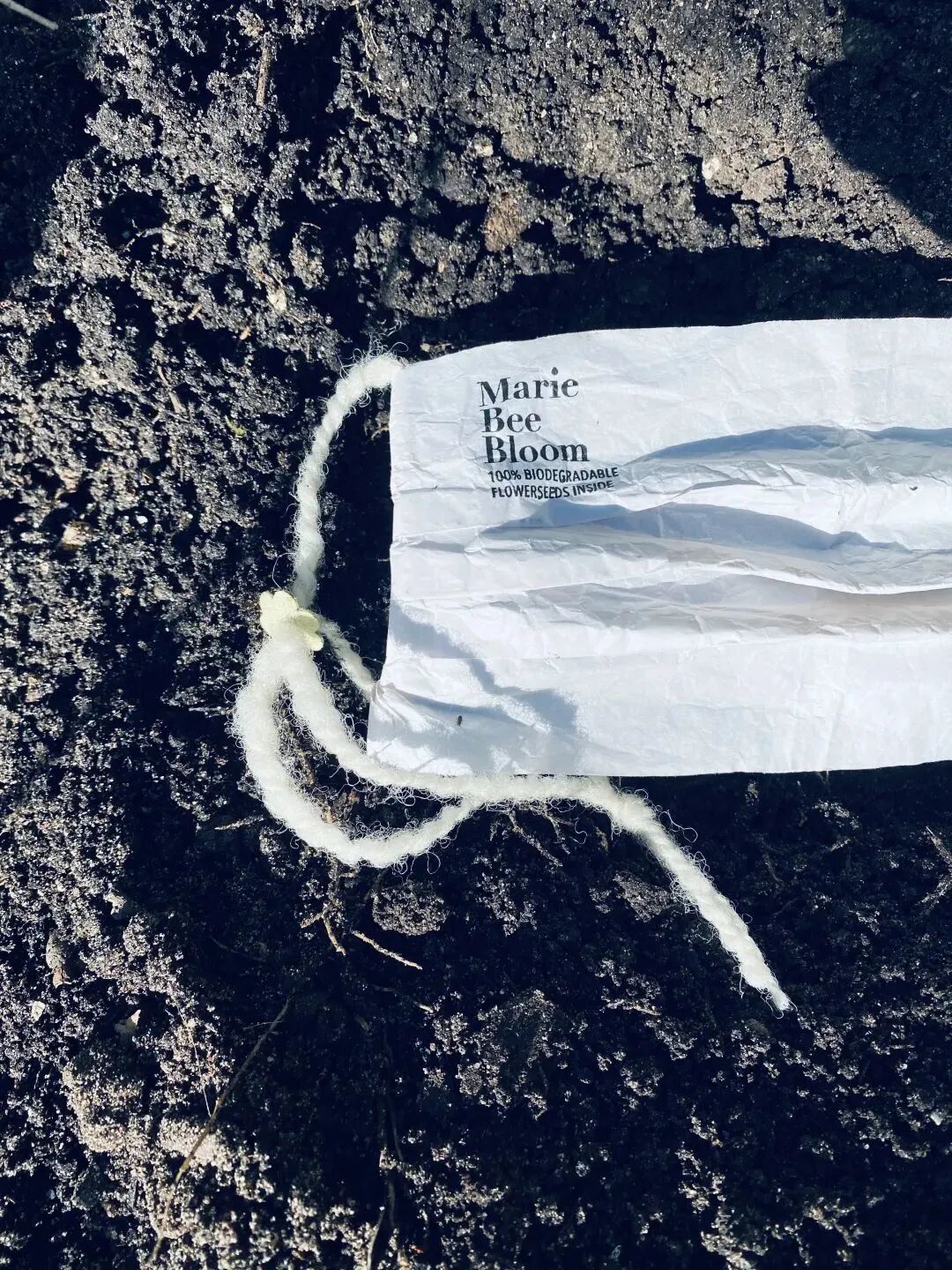生活在荷兰乌得勒支的平面设计师Marianne de Groot-Pons在2021年初设计制作了一款可100%生物降解的口罩——Marie Bee Bloom,口罩全部使用本地材料,口罩上的羊毛线是用纯羊毛手工纺制而成,将绳子固定在面罩上的胶是由马铃薯淀粉制成,因此整个产品都是完全可以生物降解的。