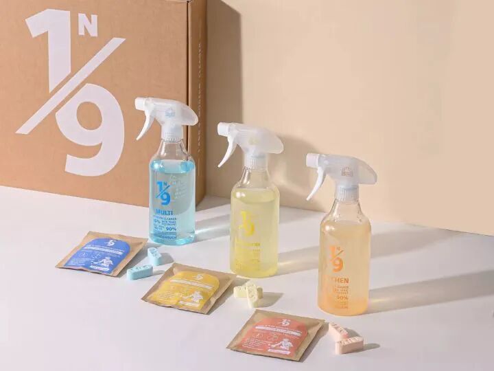 Supublic设计了一组由一定浓度的无毒清洁剂制成的药片,用户可以将其溶解在水中,制成 430 毫升的溶液。1N9 这个名字是对 10% 的洗涤剂与 90% 的水的比例的解释。