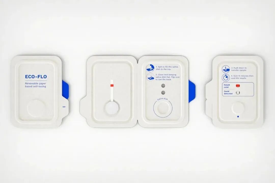 塑料一直大量使用在新冠疫情相关的防疫措施之中——口罩、核酸检测和消毒剂瓶。 Morrama 的创始人兼创意总监乔·巴纳德 (Jo Barnard) 说:“随着新的新冠病毒变种的不断发展,主动进行抗原测试已经并将继续成为新冠疫情共存的重要组成部分。我们从这里受到启发,希望创造出一种新的新冠病毒试剂盒,该试剂盒不会增加最终进入我们垃圾填埋场的塑料量。因此 ECO-FLO 诞生了。”