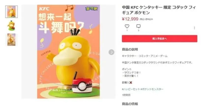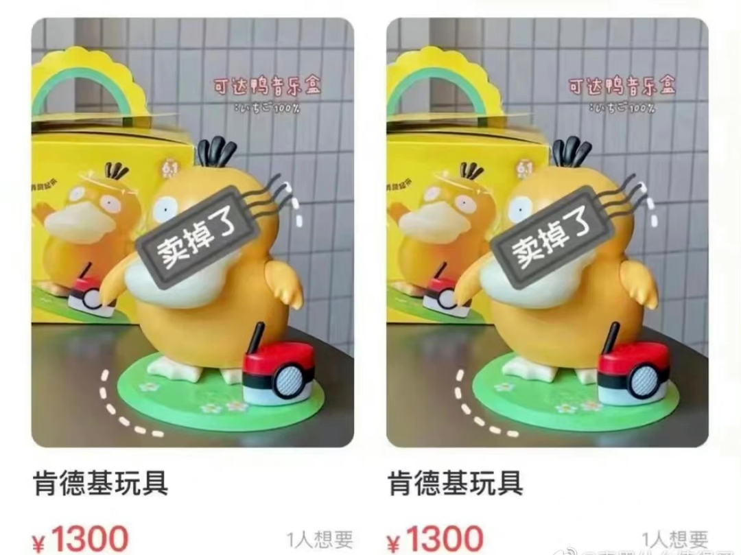 最新文章2024-01-24 可达鸭飙价到3000元!从赠品到“一鸭难求”,网友:又是智商税? 你抢到「可达鸭」了吗? 肯德基于5.21推出六一套餐,并赠送玩具。 可达鸭打败皮卡丘,成为“新晋顶流”。 从69元的套餐赠品,到“3000元一只”也难求。 短短5天,身价暴涨30倍。 明星,蓝V……全网都为之上头! 继玲娜贝尔,冰墩墩后,可达鸭成为新一代爆火卡通玩偶。 呆头呆脑,动作单调,似乎并无可取之处。 这只鸭子,到底凭什么令全网疯抢? 爆红“鸭” 先来看一张动图: 可达鸭身披高达装备,挥动双臂,跟着BGM有韵律地弹动,要多魔性有多魔性。 这则短短40s的视频,播放量高达150W。 图源@骑士126 一夜之间,此类“可达鸭新玩法”的短视频霸屏网络。 成年人理想三件套,发财,退休,求点赞。 ▼发财 ▼退休 ▼求点赞 结合疫情的有趣互动: 给鸭子cosplay的,绝对是高阶玩家。 连各大蓝V也被吸引,用它在线宣传反诈骗。 可达鸭算是被互联网人玩明白了! 突如其来的爆火,让推出本款玩具的肯德基也猝不及防。 “没了,真的没了!” 目前全国肯德基门店的可达鸭,均已被抢断货。 ▲今年的三款 这不是肯德基第一次推出可达鸭玩具。 在2019年,2020年,肯德基曾多次与宝可梦联名。 遇上“顶流皮卡丘”,可达鸭只有集体坐冷板凳的份。 但今年,它成功翻红! 深究可达鸭爆火的原因,其实不难理解。 傻萌的外形,会上下舞动的手臂,再配上洗脑的广场舞BGM。 整体来说,可玩性很高。 疫情之下,被“憋疯了”的成年人,用它说出心声; 压力背后,被“压怕了”的成年人,用它暂寻乐趣。 用网友的话说: “这个玩具对小孩来说太幼稚,但对成年人来说却是刚刚好。” 不是「天价鸭」,是「可达鸭」 但随着爆红一起来的,却是“漫天要价”。 目前二手平台上,可达鸭最高被炒至3000元一只。 价格飙升30倍,且已被抢空。 黄牛买断货源后,高价转手。 童年玩具,成致富工具。 就连日本交易网站也有了可达鸭的身影。 售价约为人民币680元一只。 同时,衍生出新型商机。 “10块钱维修可达鸭”的生意,已现身交易平台。 网友喊话:“压力给到义乌!” 果然商家们没让大家失望,单价25元,1000只起售。 对于以上种种,肯德基的官方回应是: 高价贩卖属于个人行为,与肯德基官方无关,公司坚决不予支持! 时间拉回1996年,可达鸭初次登场。 没错,就是那部令无数中国孩子死守电视机的-《神奇宝贝》。 可达鸭黄色的身体,扁扁的嘴巴,头上还有三根呆毛。 看上去很呆,事实上它的确很弱。 进攻性零,到哪儿都是挨欺负的对象。 作为水属性的宝可梦,却不会游泳,著名的“鸭子套游泳圈”就是从它开始。 许多人对它的印象就是:偏头痛。 但当可达鸭头痛到一定程度后,便可使出念力和石化功,释放出不可思议的力量。 多次为小智一行人绝地反击,是隐藏的“最佳神奇宝贝”。 当“人气王”皮卡丘,小火龙,杰尼龟都无能为力的时候, 轮到可达鸭登场! 一招石化功外加念力,妥妥刷爆存在感! 游戏中,它是无可替代的“萌蠢担当”。 游戏外,它的社交友好属性,为它狂揽好评。 所以,无论价格被炒到多高,对“鸭迷”而言, 可达鸭,始终是他们心中纯粹的童年经典。 「天价鸭」年年有 类似“抢购可达鸭”的风波,不是第一次。 年初,作为冬奥吉祥物的冰墩墩走红。 这个既能在冰上耍酷,又能在观众前卖萌的小宝贝,成功地把大家迷得七荤八素。 “一户一墩”的愿望,阅读量高达上亿。 怎么说,也是在自家门口举办冬奥会盛事。 为了支持一波,网友火速掀起购买冰墩墩的热潮。 旗舰店门口排队长达千米,时长高达5小时以上。 光是听着就能体会到,可真是“一墩难求”! 有需求就有买卖,商机开始蠢蠢欲动。 期间,黄牛通过卖号赚钱,前200号报价500元一位。 官方售价58元的冰墩墩钥匙扣,喊价500元。 官方售价118元的盲盒组,3500元顺丰包邮,溢价近5倍! 同样的,21年底,玲娜贝尔圣诞系列开售。 粉色的小狐狸,眨着忽闪忽闪的大眼睛,谁能拒绝? 预约通道拥挤到瘫痪,开放不到1小时,产品便被一扫而空。 于是,没抢到的网友急了。 发文称:“愿用飞天茅台换玲娜贝尔!” 原价500元的玩偶,在二手平台上标价最高超6000元,甚至搞起了拍卖。 换算一下,玲娜贝尔系列产品在市场上,溢价超10倍! 这大概出乎所有人预料。 作为“萌宠系”新秀的玲娜贝尔本人,大概不会想到,大家竟为它如此疯狂。 19年,一则“为抢水杯大打出手”的新闻,惊掉众人下巴。 没错,抢的就是星巴克限定款猫抓杯。 限定款,高萌造型,粉嫩配色,每一条都戳中粉丝的购物欲。 有人全家出动排队,有人在店门口支帐篷,也有人为杯子大打出手,且不止一次。 线下卖空后,线上继续闹腾。 价格从原价199元,一路飘高,直至突破1000元。 更早的优衣库联名款,购买现场堪比动作大片。 凌晨,人们摩肩接踵,跃跃欲试,就等优衣库开门。 开门了,钻门缝,扒衣服,甚至挥拳头…… 设计师大概猜不到,自己设计的T恤受欢迎到了如此地步。 但最终,“3秒钟卖出一万件”的喜闻,由闹剧收场。 原价99元的T恤,最终也变成了300元一件的“奢侈品”。 此刻谁还说得清,到底是买商品,还是买热度呢? 抢购的热潮,一波高过一波。 这一次肯德基的联名玩具,让可达鸭迎来翻红。 有人买的是情怀,有人买的是好奇。 无论出于何种目的,看到儿时回忆再次出圈,都是鸭迷们喜闻乐见的事情。 但在将它娱乐化的同时,理应明