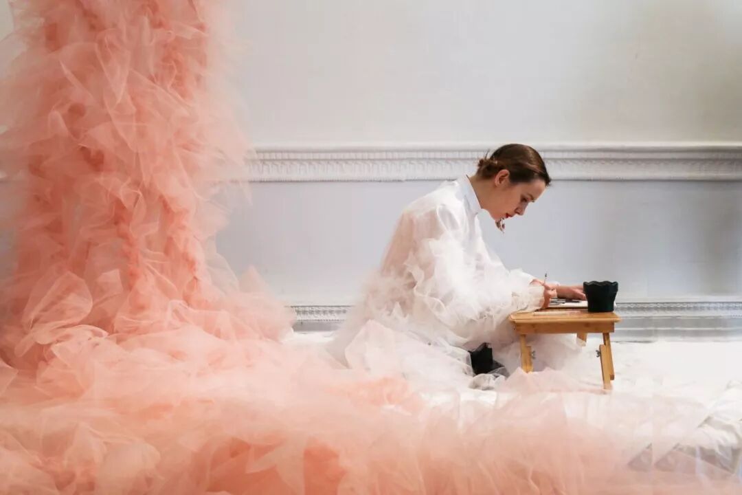 她从自然中提取灵感,通过重复灵感元素的构成使得袖型与身体融合并转化为立体化的织物构造。Roberts-Wood自身对于解剖学的热爱去设计了一种无缝连接的方式,以其标志性的“无缝褶边”,传达着梦幻的力量和纯粹的浪漫。