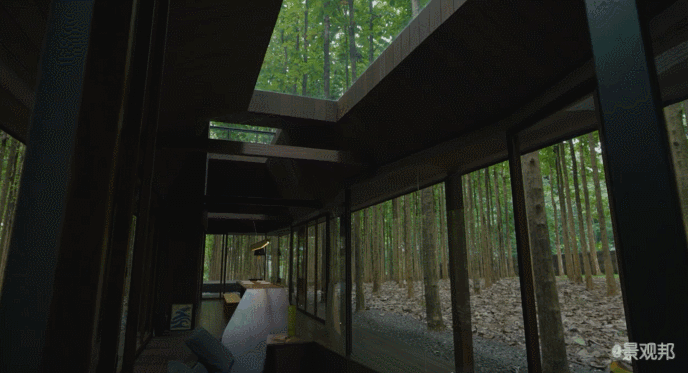 建筑纵向上全部采用通透的落地玻璃窗,以便能够全方位欣赏树林美景。