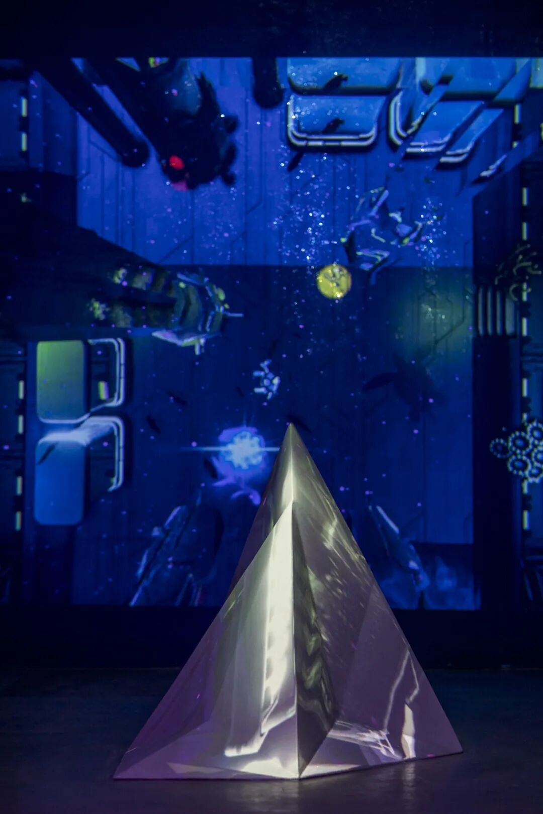 这件作品探索了连接艺术与技术的微妙脐带,以及虚拟现实的本体。它包含两部分,由一面镜子构成的迷宫和数字化制作的VR空间。观众戴着VR头显走进迷宫,这使他们无法看到迷宫中眼前的事物。VR 世界不与物理迷宫重叠。物理迷宫限制了观众在 VR 世界中自由移动。它揭示了虚拟空间和真实空间之间的差距。戴着VR眼镜在迷宫中摸索的游客,连同迷宫本身,构成了一场奇观。隐藏在VR技术中的阶级和权力结构的隐喻通过观看和被观看来揭示。