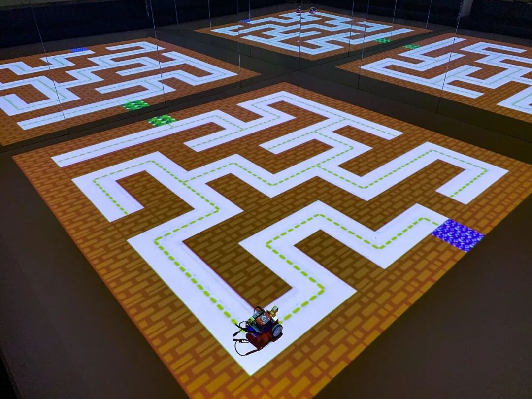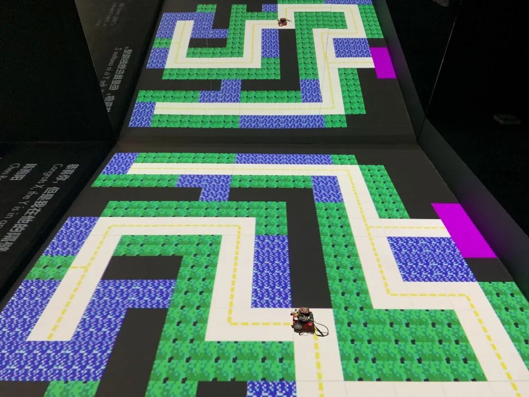 人们通过网络技术每天用手机上网就是一个追逐和捉迷藏的过程。比如说你想去寻找一个事情的答案,过程中你觉得自己就像在迷宫中行走。这两件作品中的智能体走迷宫和追逐背后的含义可能是“空白”,它没有追逐的目的,也没有走迷宫的目的。我们会认为说走迷宫的目的是找到出口,那么为什么要走这个迷宫呢?这个含义就演变成我们一直在讨论的话题——要不要用手机?要不要用网络?