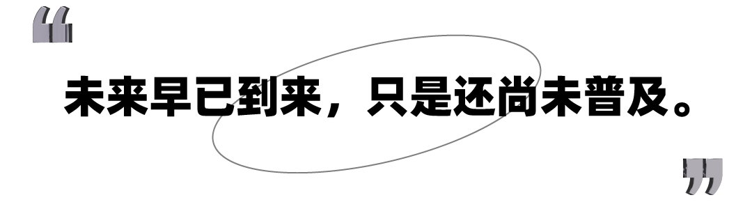 我印象很深的是威廉吉普森在《神经漫游者》这本书里写的一句话——未来早已到来,只是还尚未普及。我认为我们目前是这样的,很多很牛的技术已经在这个世界的某个角落正在发生,只等着未来可以普及。