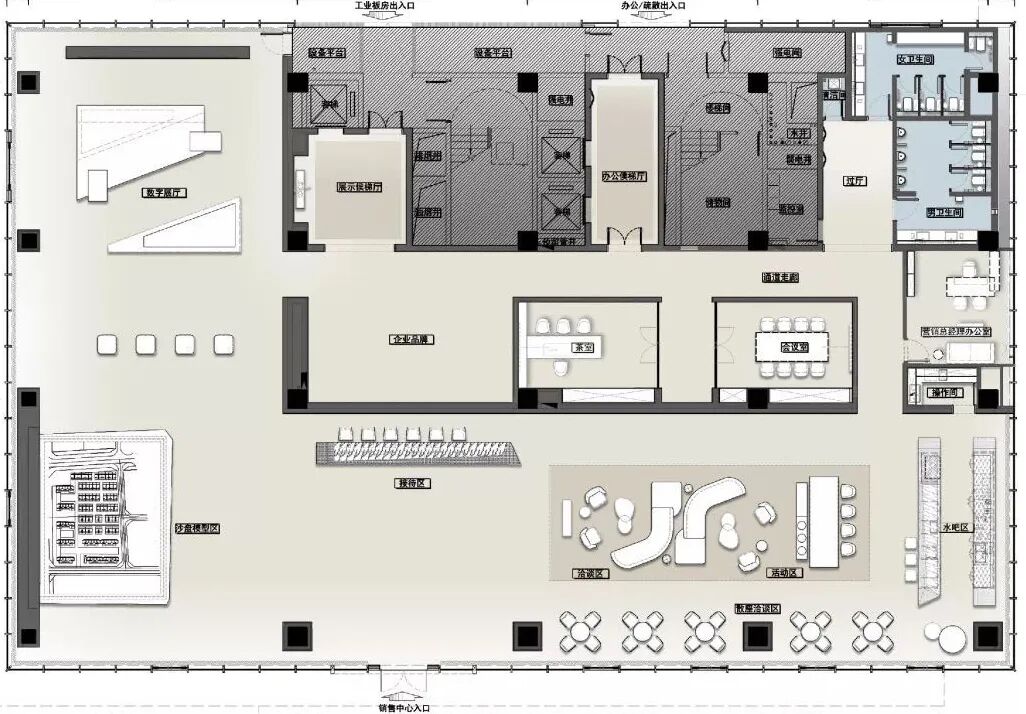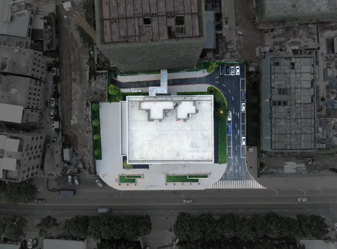 展示中心的主要展示面为西侧道路,将停车区居于东侧一角,可最大化保证建筑及景观空间的完整性。结合该街区的尺度街景,考虑建筑的高度与体量,运用建筑的设计语言呈现产业城的定位形象。