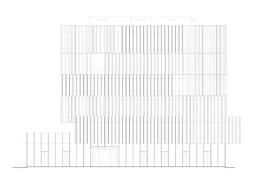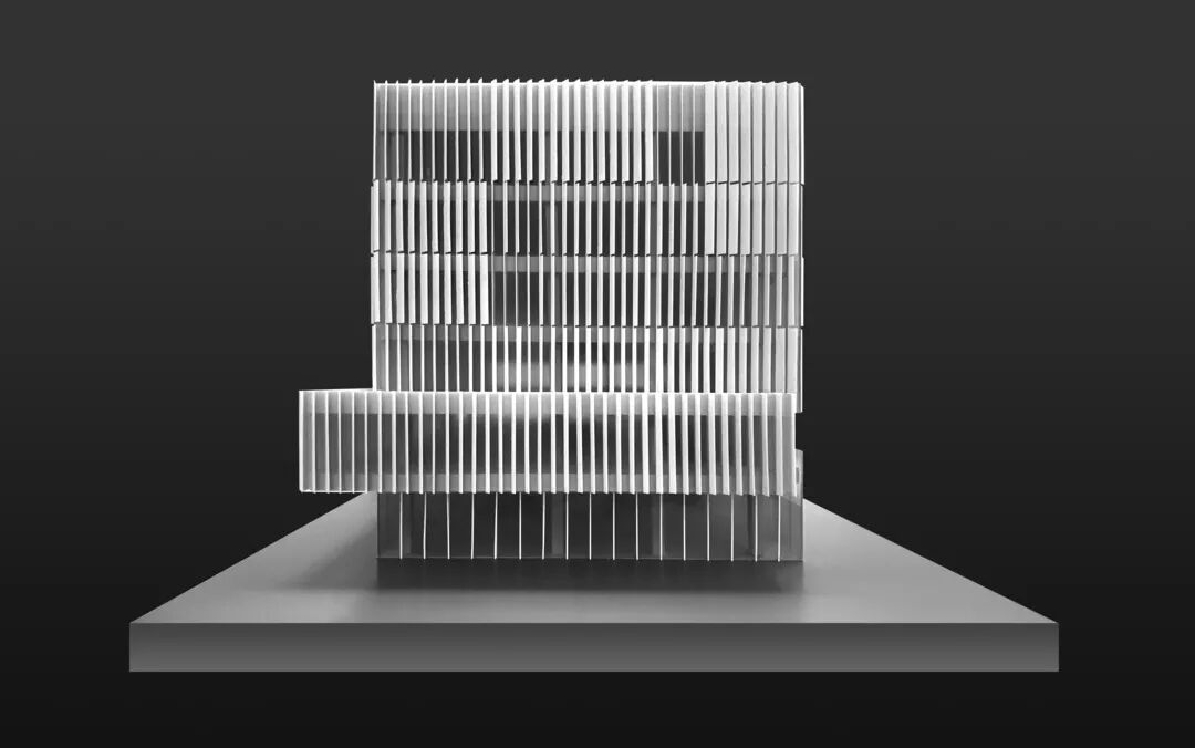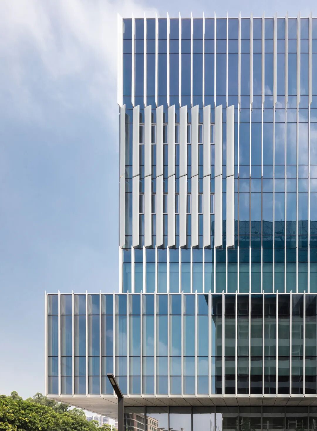 通过铝板三种角度的变化,在理性的立面上谱奏出富有节奏感、韵律美的表皮肌理,塑造强烈的视觉识别性。