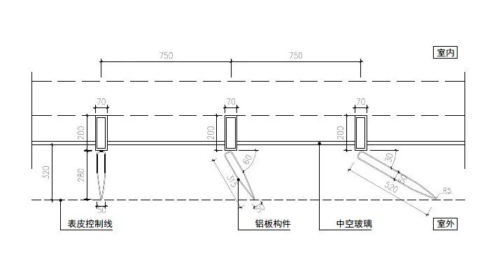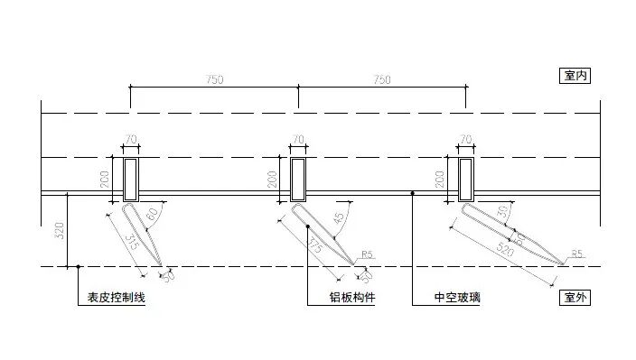 建筑立面的铝板以750mm宽度为模数,按设计逻辑有序分布,从幕墙竖杆间距到天花吊顶造型分缝,均严格遵守此基础模数。