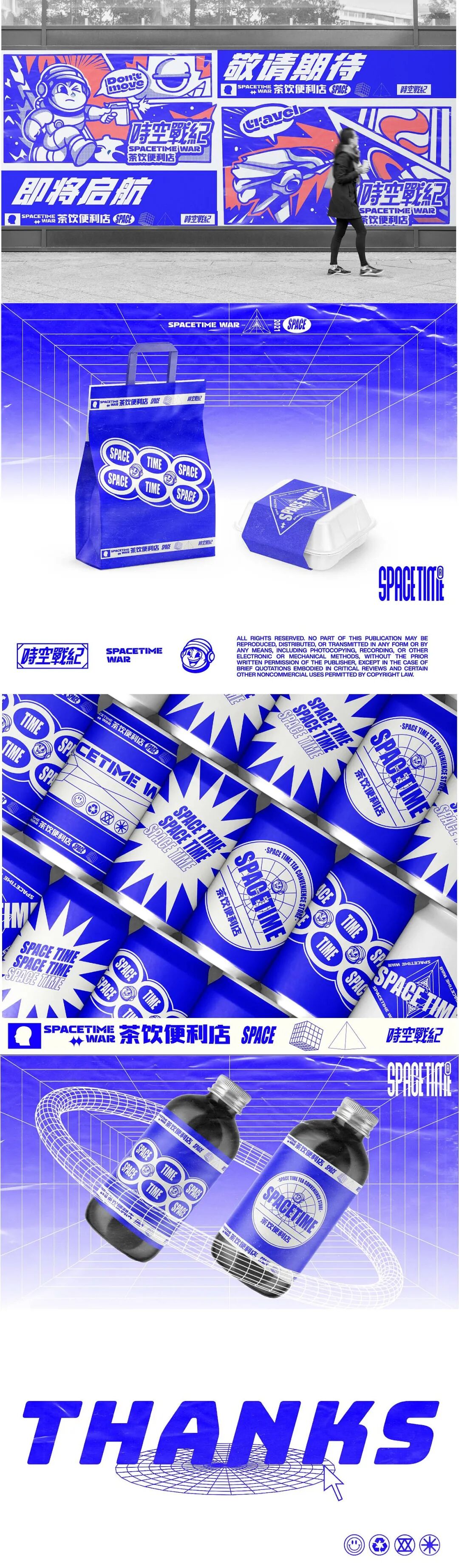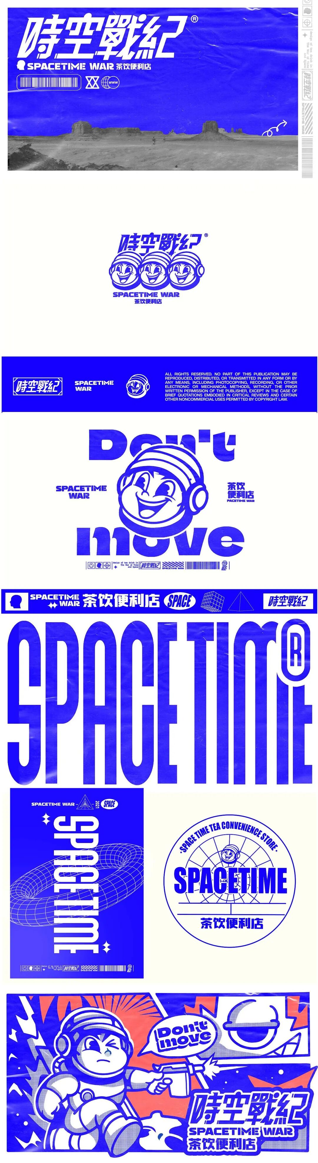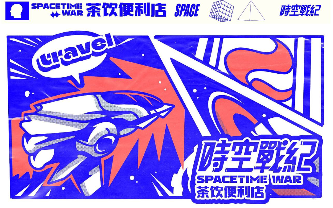 时空战纪茶饮品牌,以勇气和冒险为核心,并采用克莱因蓝作为主色调,定下了整体的品牌调性。蓝色代表无尽的太空和探索,“时空战纪”正是呼应这样的概念,围绕这个延伸出漫画形式的插画,体现了勇气和冒险旅行的主题。
