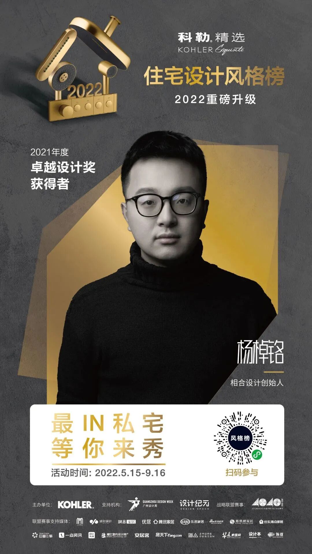 科勒精选住宅设计风格榜由科勒中国于2019年发起,住宅设计风格榜致力于成为优秀室内设计师提供设计作品展示和交流平台,传播敢创设计与艺术之美。2021年科勒中国联合广州设计周及设计纪元进一步升级科勒精选风格榜,邀请知名设计师担任评委,表彰年度优秀住宅设计作品,同时助力获奖设计师参与40 Under40中国设计杰出青年等国内、国际设计大奖评选。