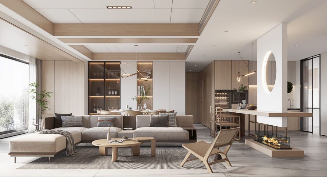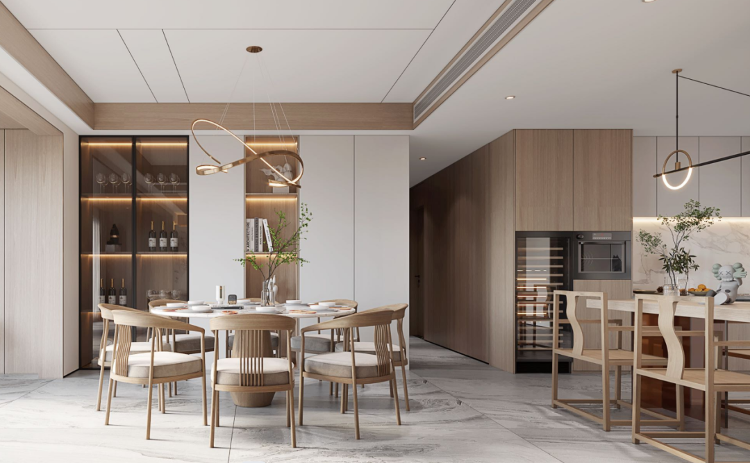 杨棹铭:在设计上我们设计从返璞归真的东方哲学出发,寻求人与自然融合的诗意状态。置身其中,自然而然放下身心,平静的感受当下,一草一木、一杯一盏所蕴含的包容与承载。通过材质的变幻构筑当代设计语境,以橡木作为空间的主色调,贯穿连续的项目特性,将亲近自然的精神融于雅致和谐的整体氛围,赋予从容安定的空间感受。
