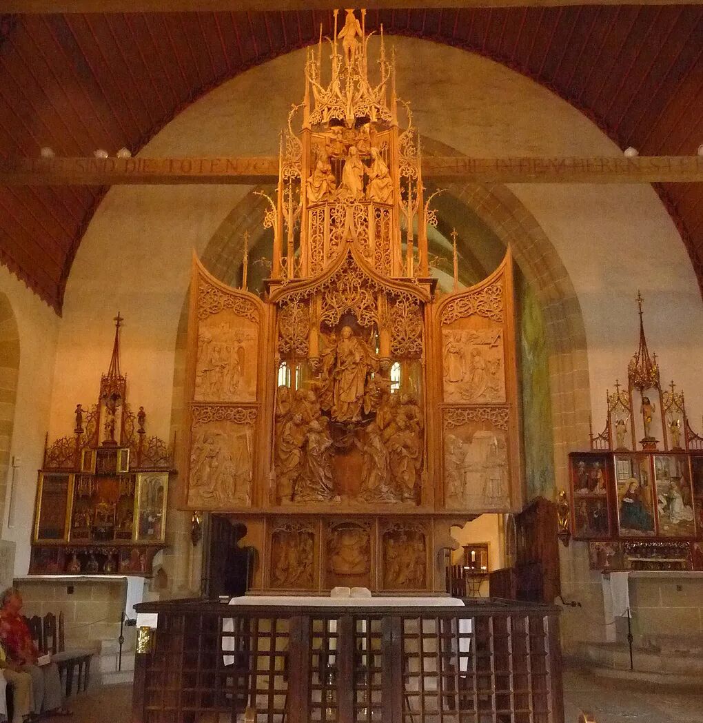 文艺复兴时代意大利的教堂祭坛往往以华丽高贵著称,但在其北方邻居德意志,虽也受到影响,却呈现出更加朴实沧桑的风格,这也算是民族性格的一种体现。