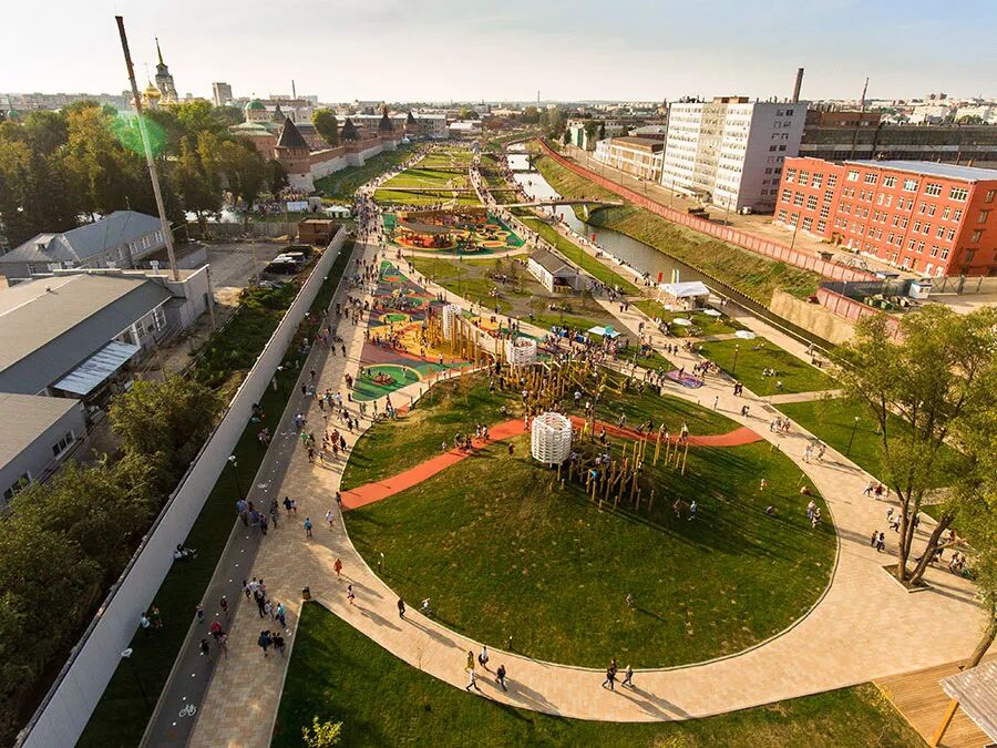 The territory of the embankment with a total area of 12 hectares was used by the Tula arms factory for a long time and was closed for residents. Now it is back to the fabric of the city.