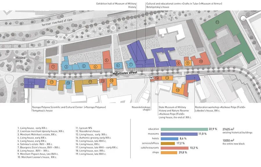 总面积为12公顷的堤坝领土曾长期被图拉军工厂使用,并对居民关闭,现在它又回到了城市的结构中。