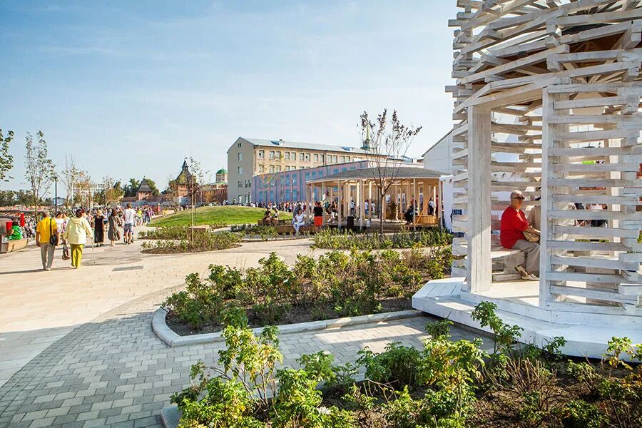 长长的堤岸不能与城市的其他部分分开而存在:沿着乌帕河前河床的步行路线成为新的步行区系统的一部分,这里有几个语义中心——博物馆区,一条有商店的步行街和咖啡馆,还有克里姆林宫的领土,由于新的入口而变得更容易到达。